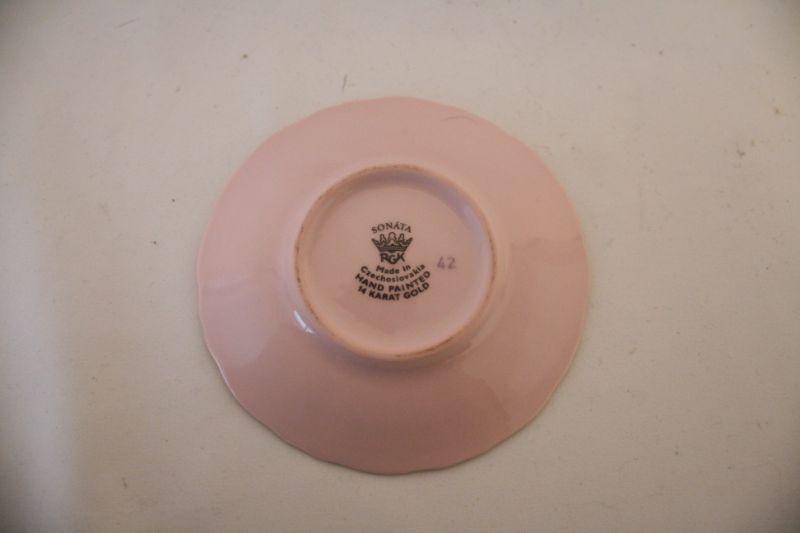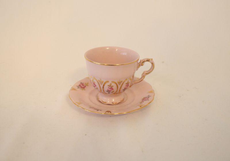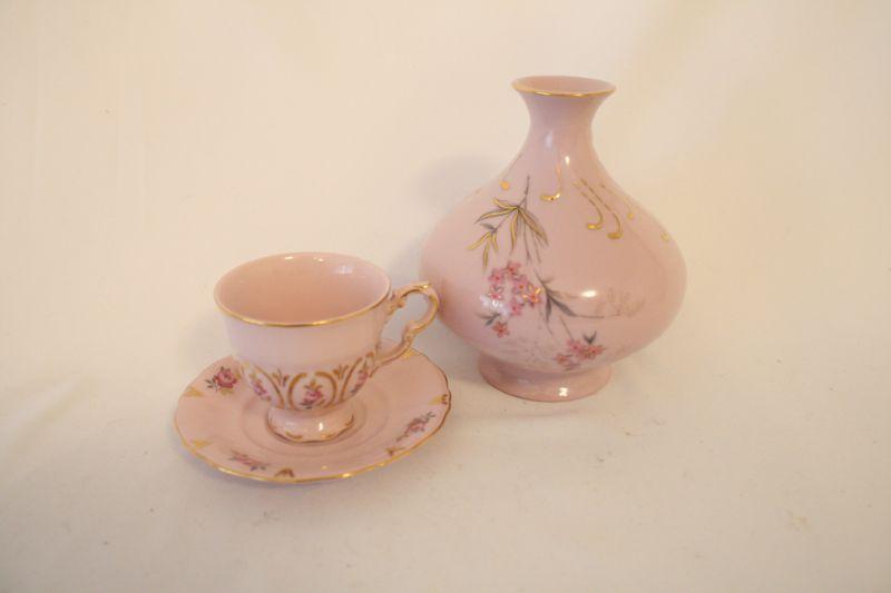 Rose Pink Porcelain Vase and Tea Cup with 14k Gold Accents - The vase is made by Leander and the tea cup is made by Sonata in Czech Republic. Both are porcelain with 24k gold accents.