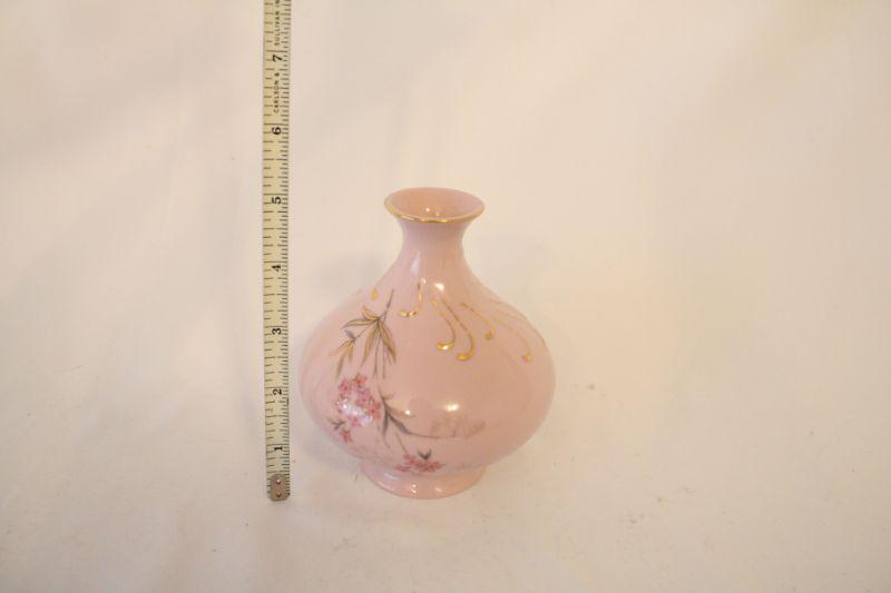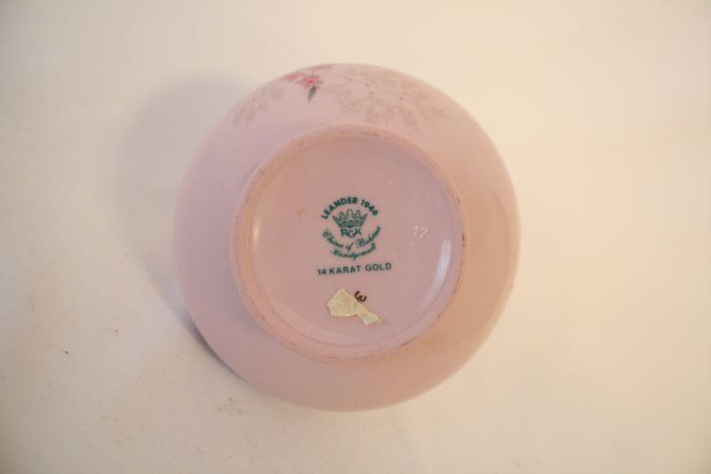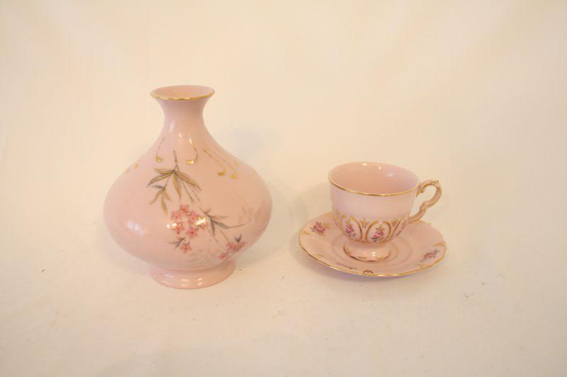 Lot #68: Rose Pink Porcelain Vase and Tea Cup with 14k Gold Accents