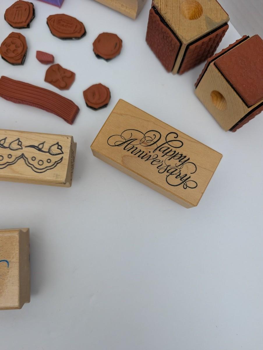 Lot Rubber Stamps Wood Mounted Crafting Music Birthday Anniversary Borders Designs