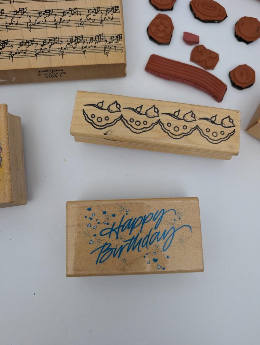 Lot Rubber Stamps Wood Mounted Crafting Music Birthday Anniversary Borders Designs