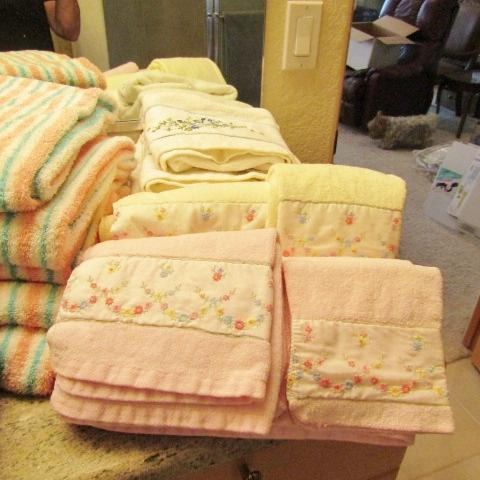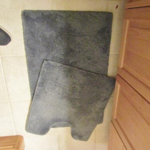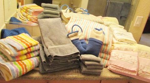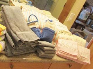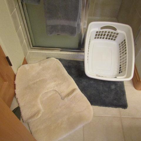 BATHROOM RUGS, LAUNDRY BASKET & VARIETY OF BATH TOWELS