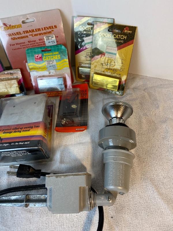 Lot# 127 RV Camper Accessories levelers Door Catches Spot Light