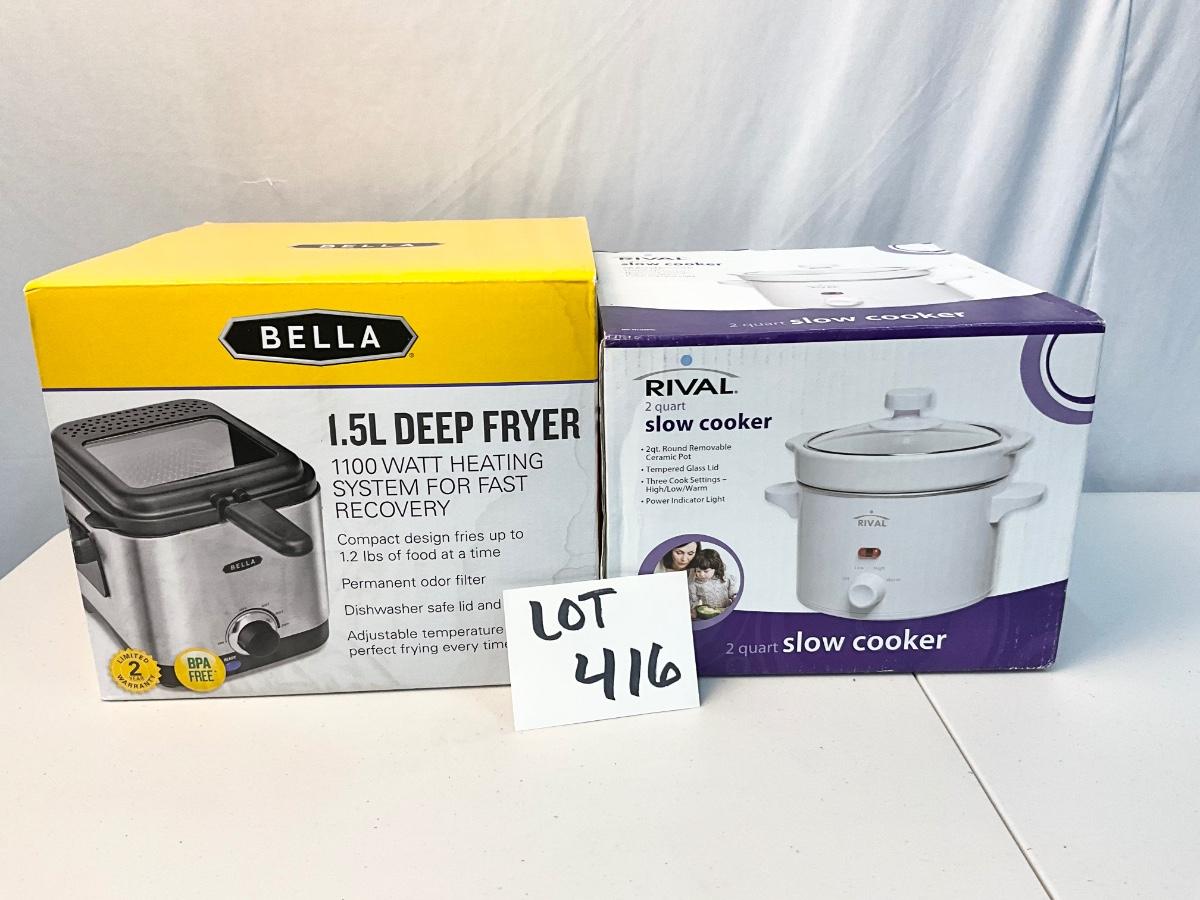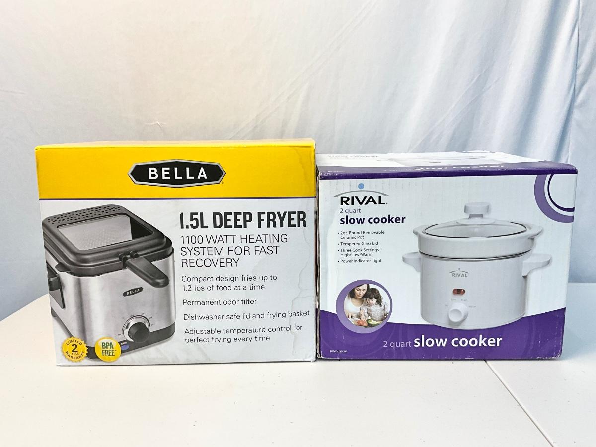 Lot S 416 NIB Bella 1.5 L Deep Fryer & NIB Rival Slow Cooker 2 Qt.