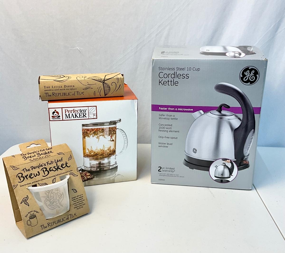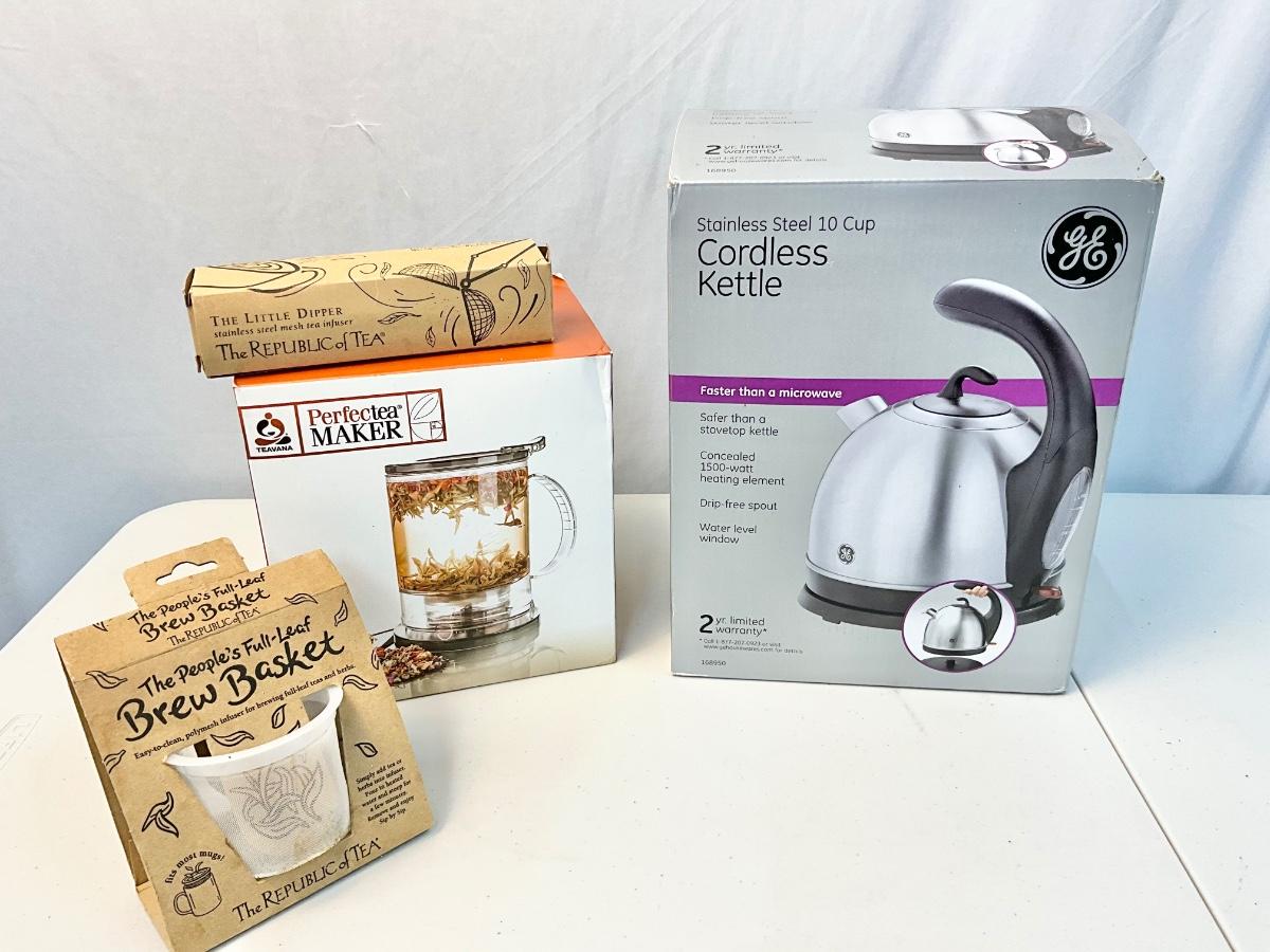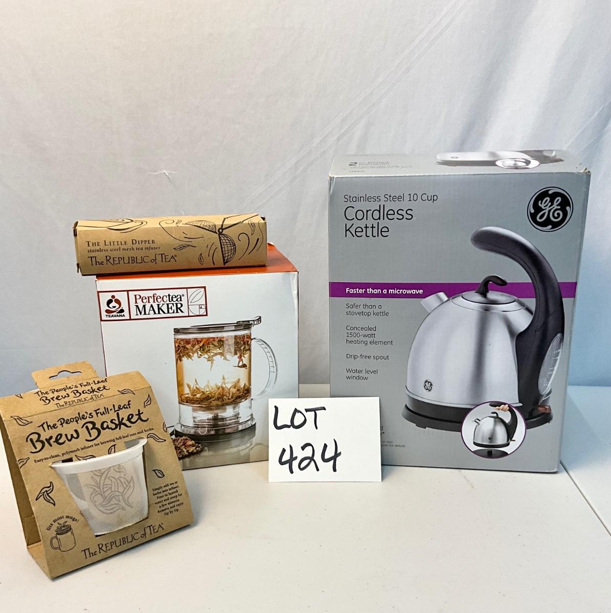 Lot S 424 NIB GE Cordless Stainless Steel 10 Cup Kettle & Perfect Tea Maker