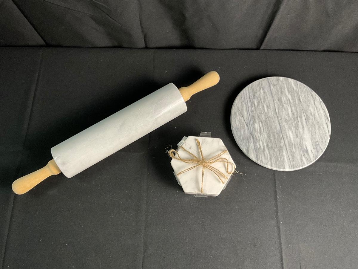 Marble Rolling Pin / Cheese Plate / 4pc Coaster Set