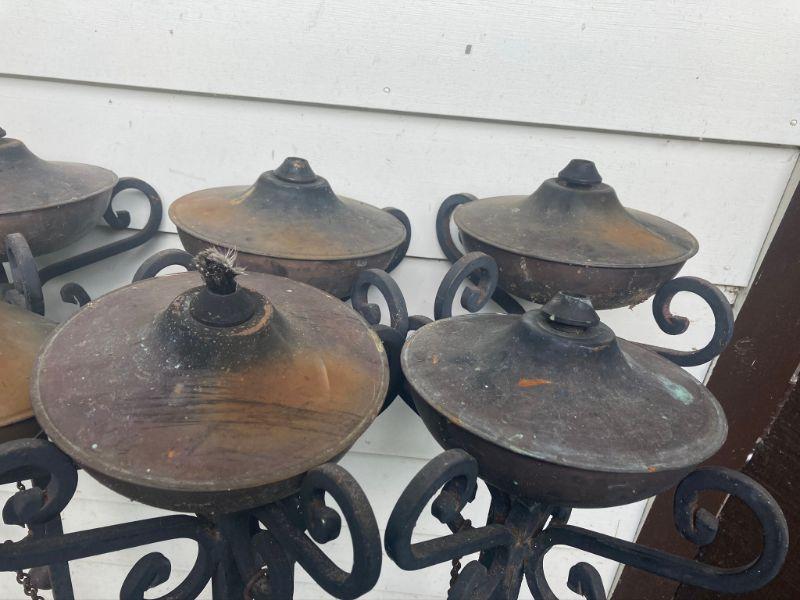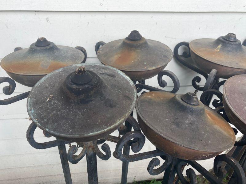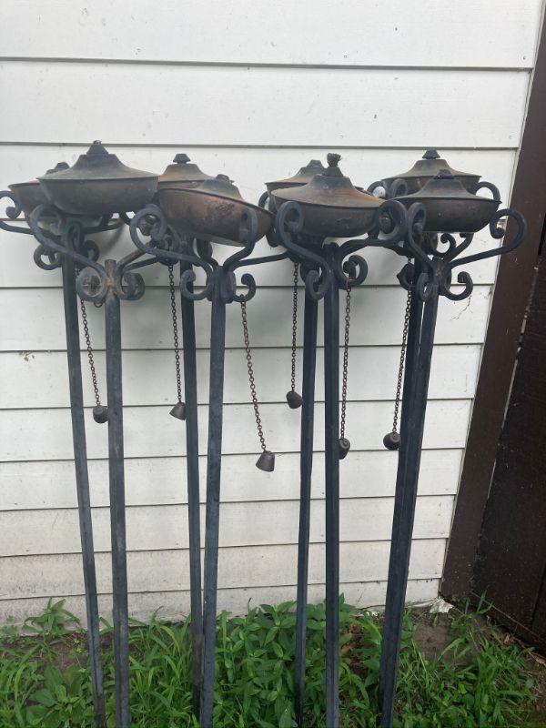 Lot S17: Lot of 8 Rustic Iron Oil Torches by Front Gate