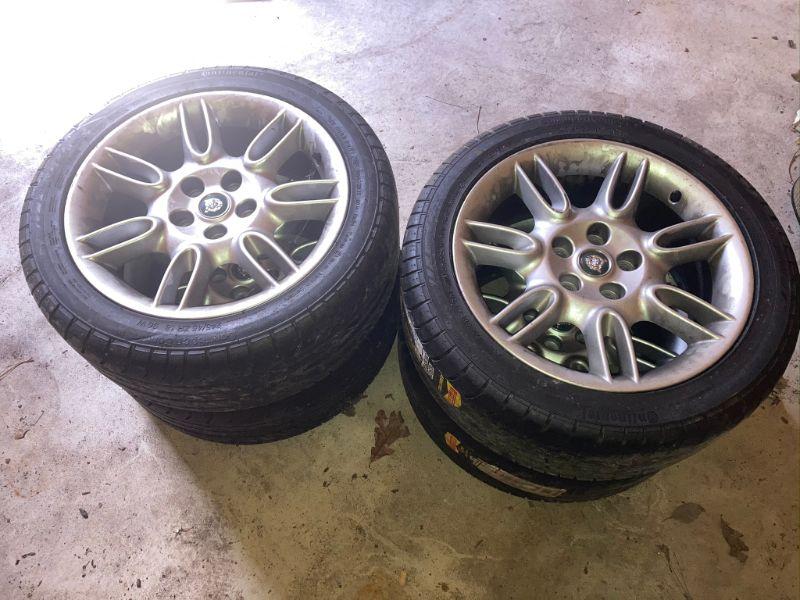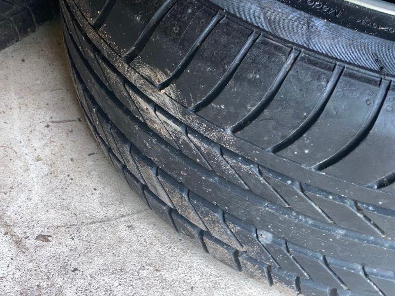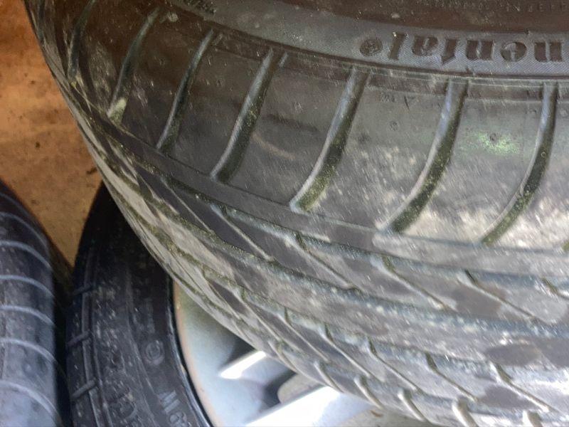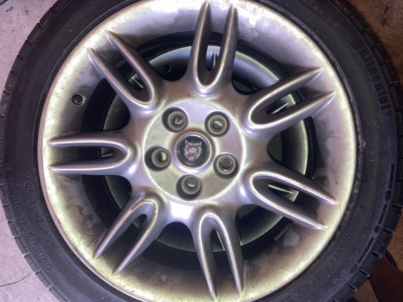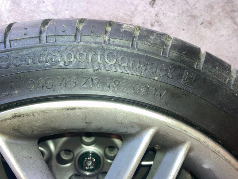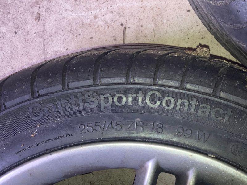 There are two pairs of different sized tires on these matching rims. 255/45 ZR 18 and 245/45 ZR 18 - See pictures for condition.