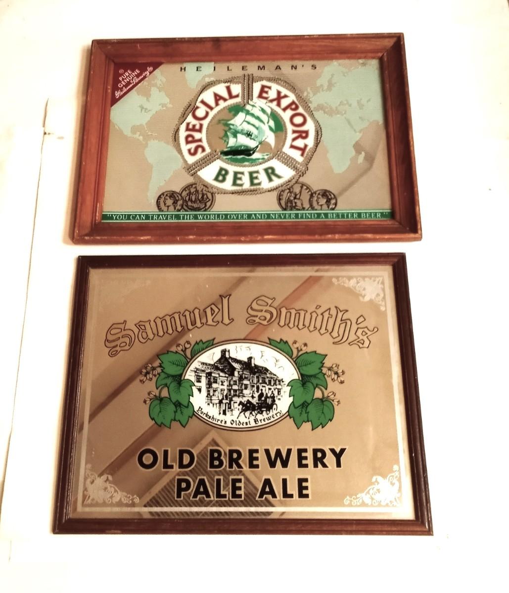 VINTAGE SAMUEL SMITH PALE ALE AND HEILIMAN SPECIAL EXPORT BEER FRAMED MIRRORS
