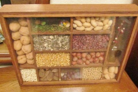 BEANS & NUTS FILL THIS SHADOW BOX BUT CAN EASILY BE REPLACED WITH WHATEVER YOU DESIRE