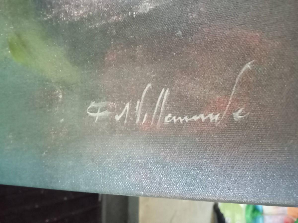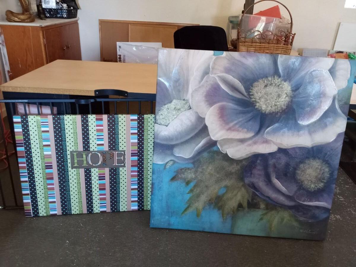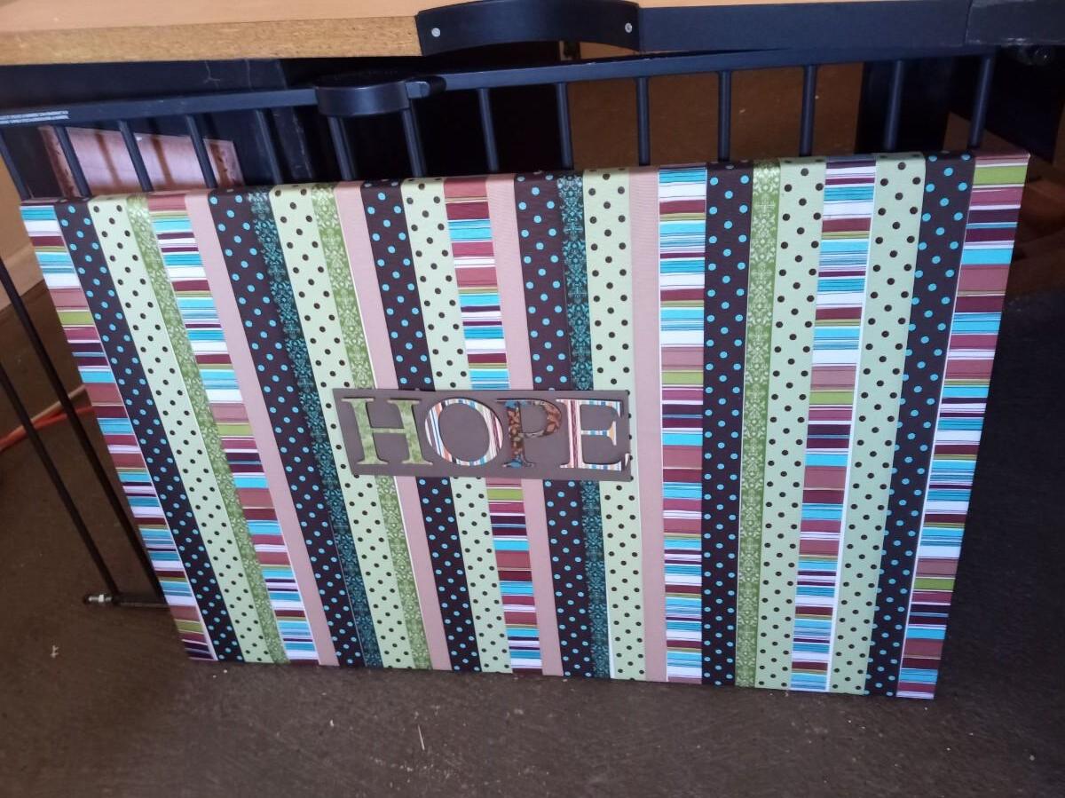 LOT  443 SIGNED OIL PAINTING AND A RIBBON "HOPE" WALL HANGING   (SE)
