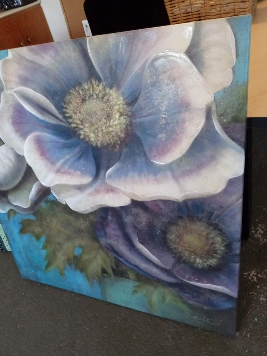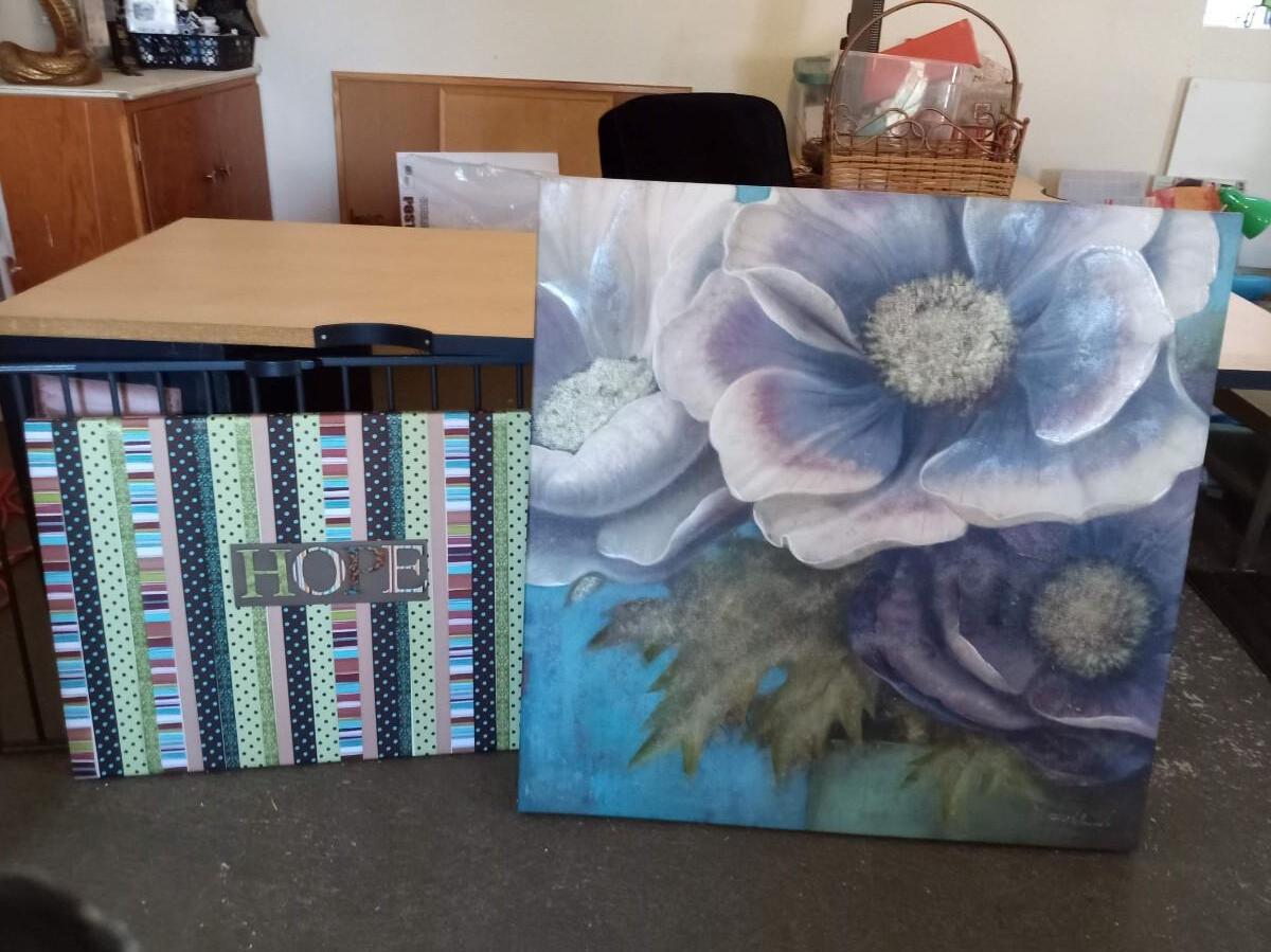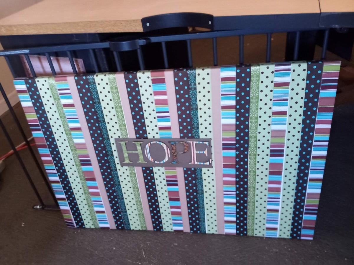 LOT  443 SIGNED OIL PAINTING AND A RIBBON "HOPE" WALL HANGING   (SE)