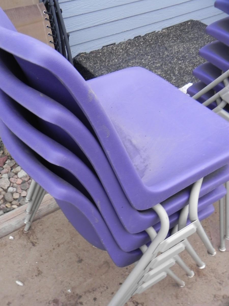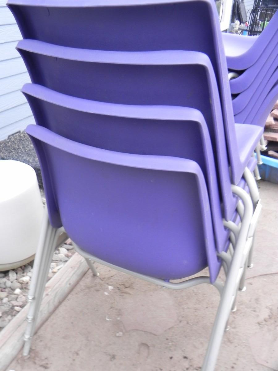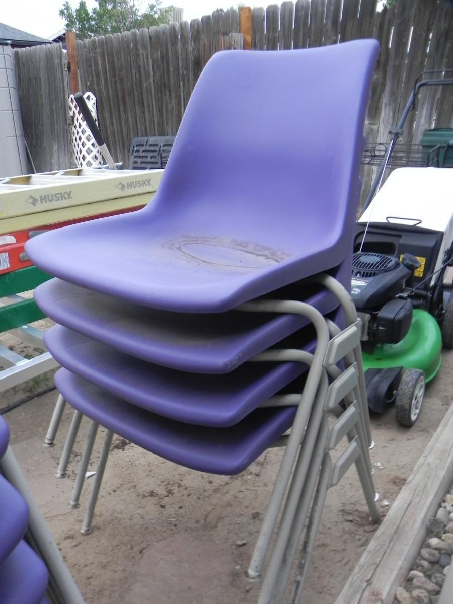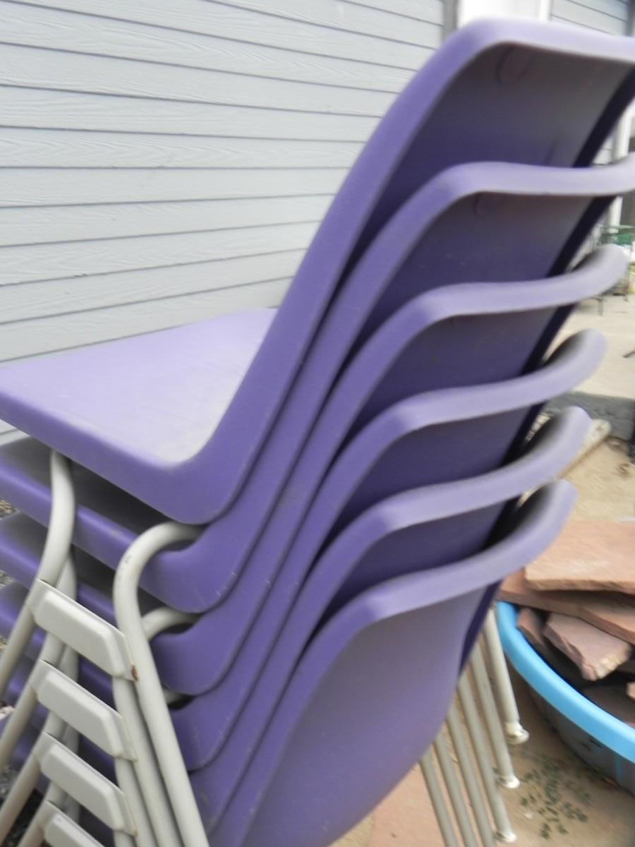 FOUR STACKABLE PURPLE CHAIRS