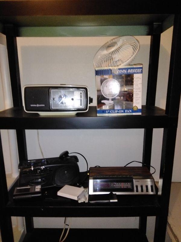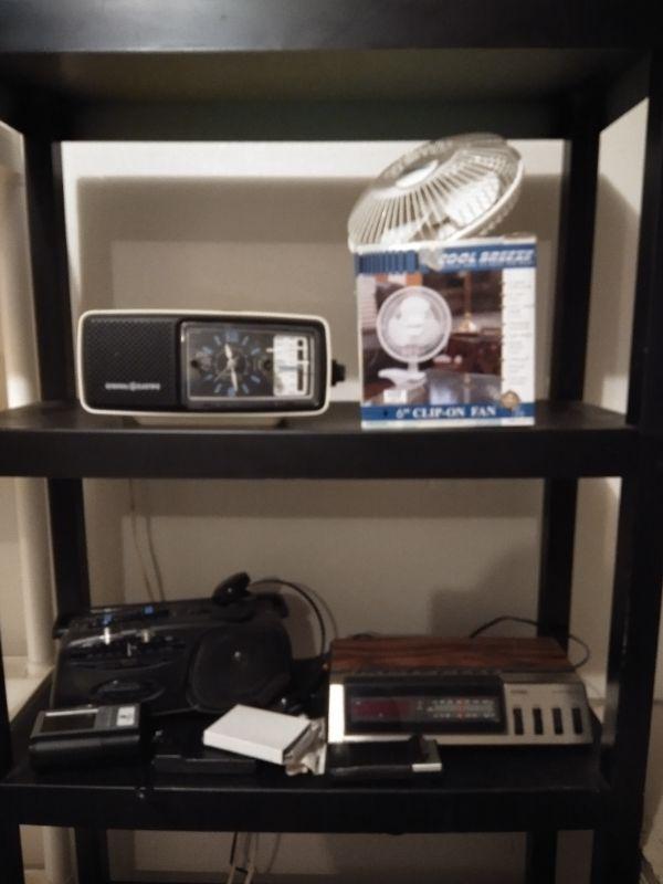 ALARM CLOCKS, CLIP ON OSCILLATING FAN, SMALL RADIO, HEADPHONES AND MORE