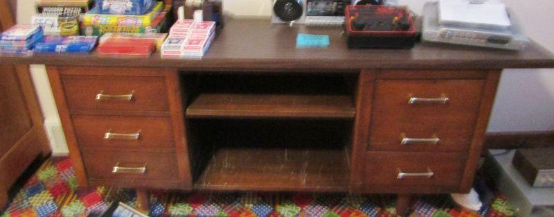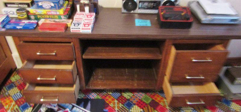 WOODEN WORK STATION WITH DRAWERS AND CUBBIES