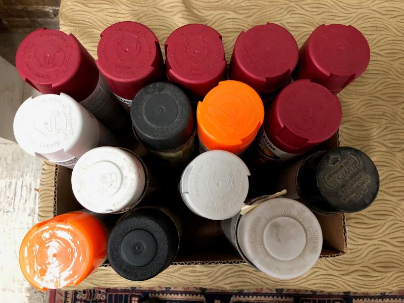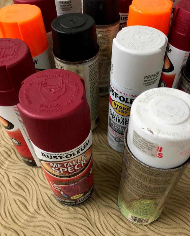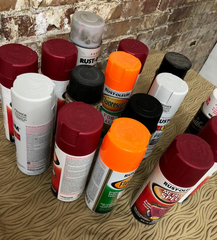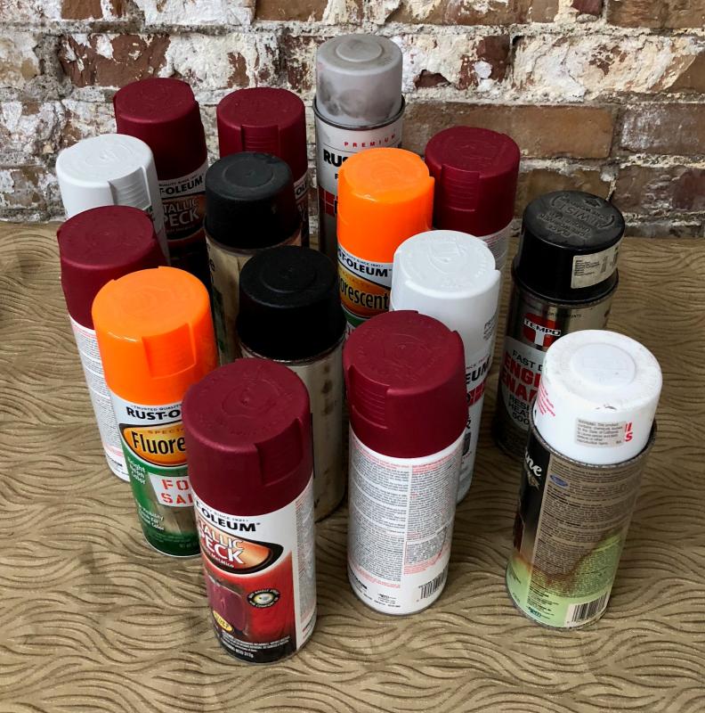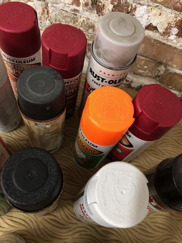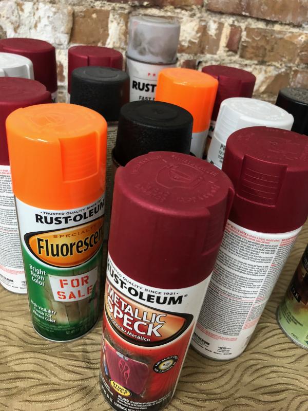 Mostly Rustoleum offered in this lot of paint spray cans...as shown...some fifteen included...