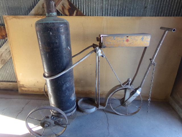 HEAVY DUTY CUTTING TORCH TANK CART MADE OF STEEL. IT HAS WHEELS SO YOU CAN MOVE IT AROUND.