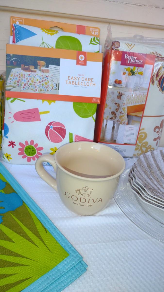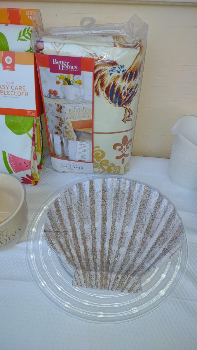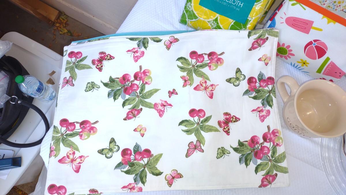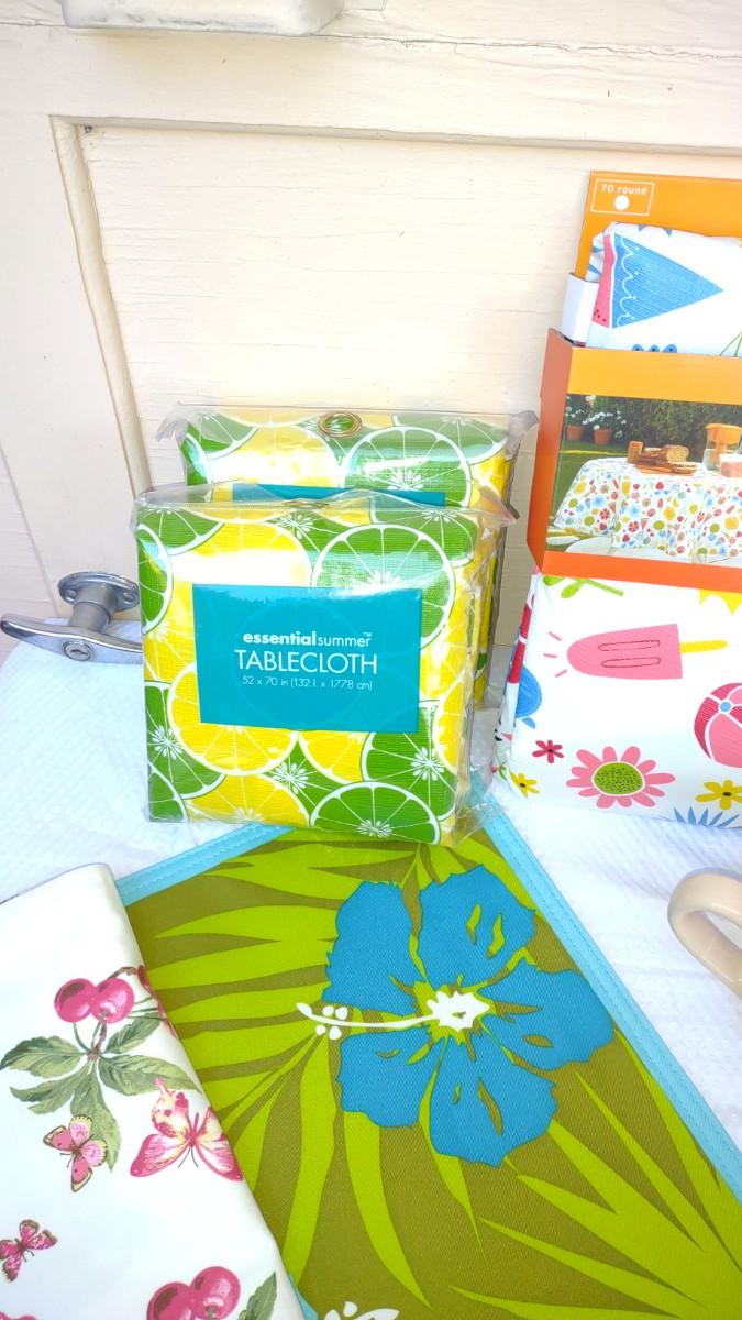 THIS LOT DEFINITELY HAS A SUMMER FEEL TO IT. WITH DECORATIONS FOR 4TH OF JULY TO PLASTIC TABLECLOTH COVERS, 4 SEASHELL PLASTIC PLATES, AND AWESOME PLACEMATS. THE BLUE PLACEMATS HAVE 3 TOTAL. AND THE BUTTERFLY PLACEMATS HAVE A TOTAL OF 6