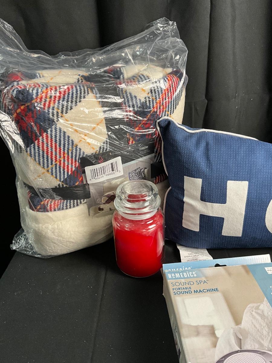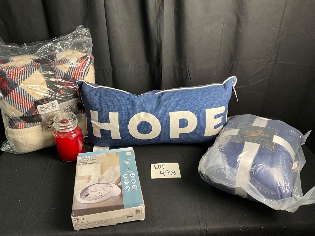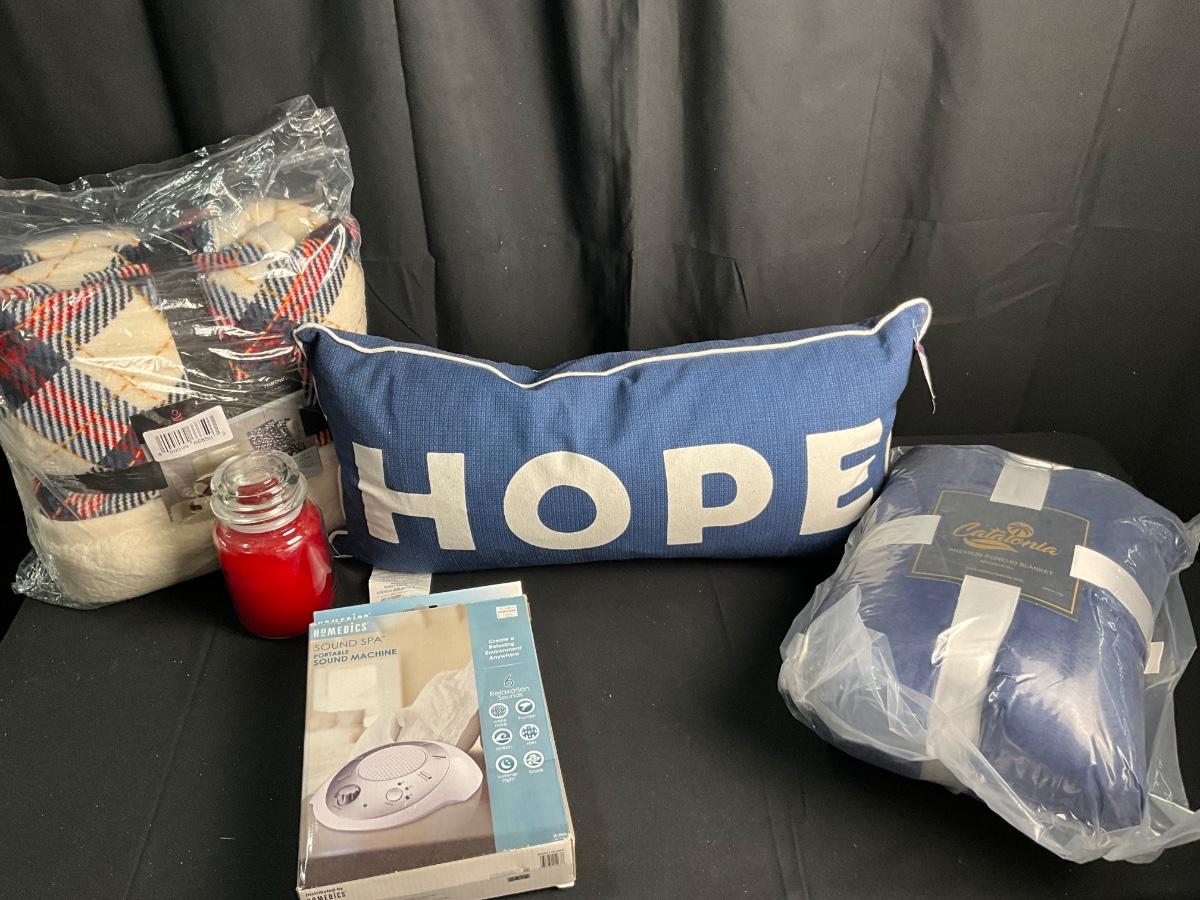 Lot T 493 NWT Catalonia Premium Poncho Blanket / Large HOPE Pillow / Homedics Sound Spa/ NWT Cuddl Duds Throw / Candle