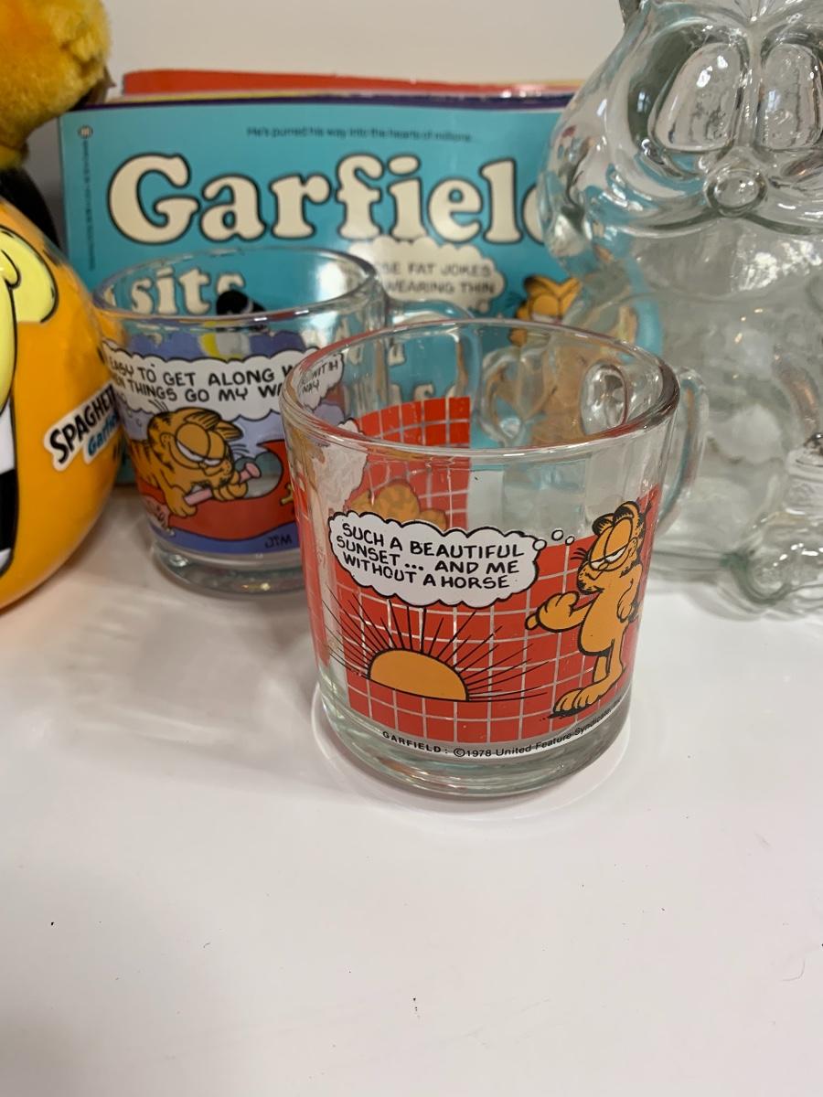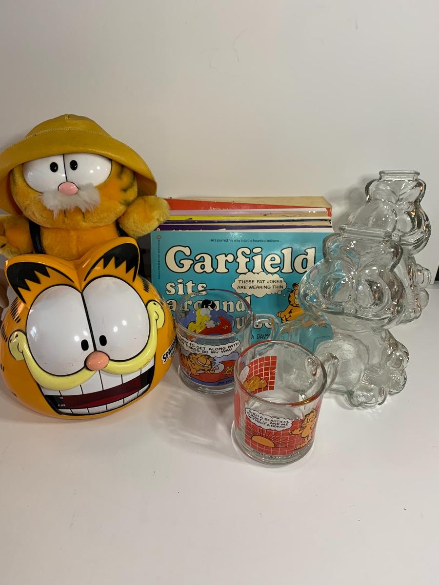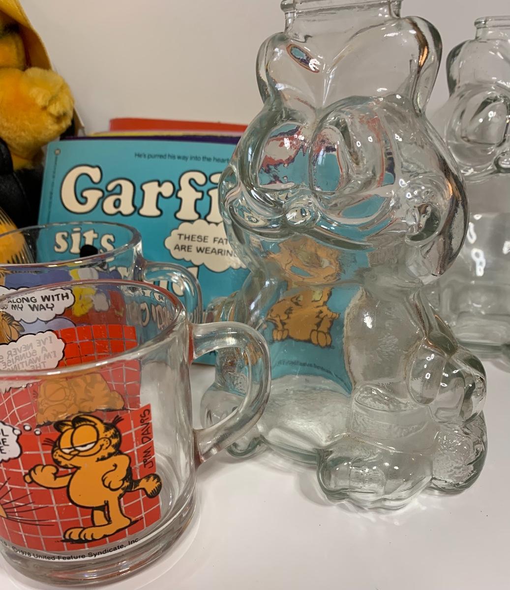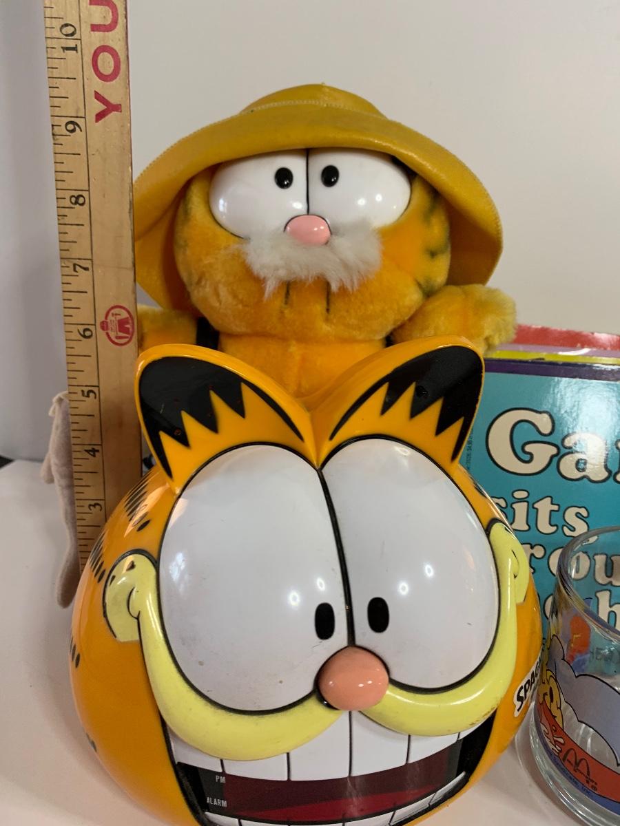 2 Vintage Anchor Hocking Garfield banks ( one box); A cool digital Garfield alarm clock. Plugged in an kept time however alarm was not tested.. Mugs & books to start your morning with the Garfield funnies. And a stuffed, standing "Catch of the Day" to complete the collection. Please see all pictures as they are the best representation of the items. The pictures show condition, measurements if taken, and what is included in the lot. Due to the large amount that we photograph and the time frame, we are not always able to take measurements. All items unless noted, are pre-owned and have been used. If you purchased furniture, you must bring help. We do not allow one person to carry large furniture out on their own. Bring help, tools and a truck for the safety of our client’s homes, and your personal safety. Company policy. Thank you.