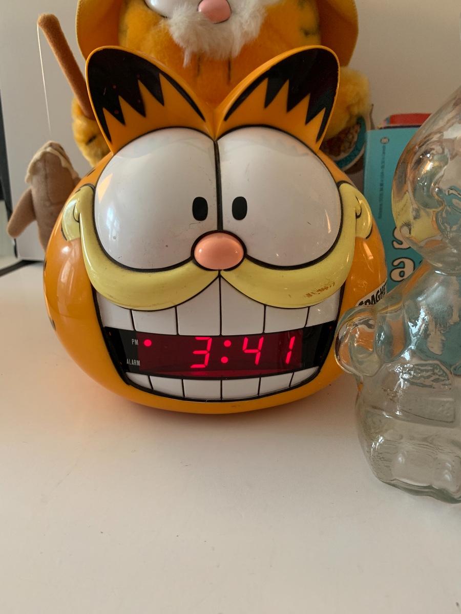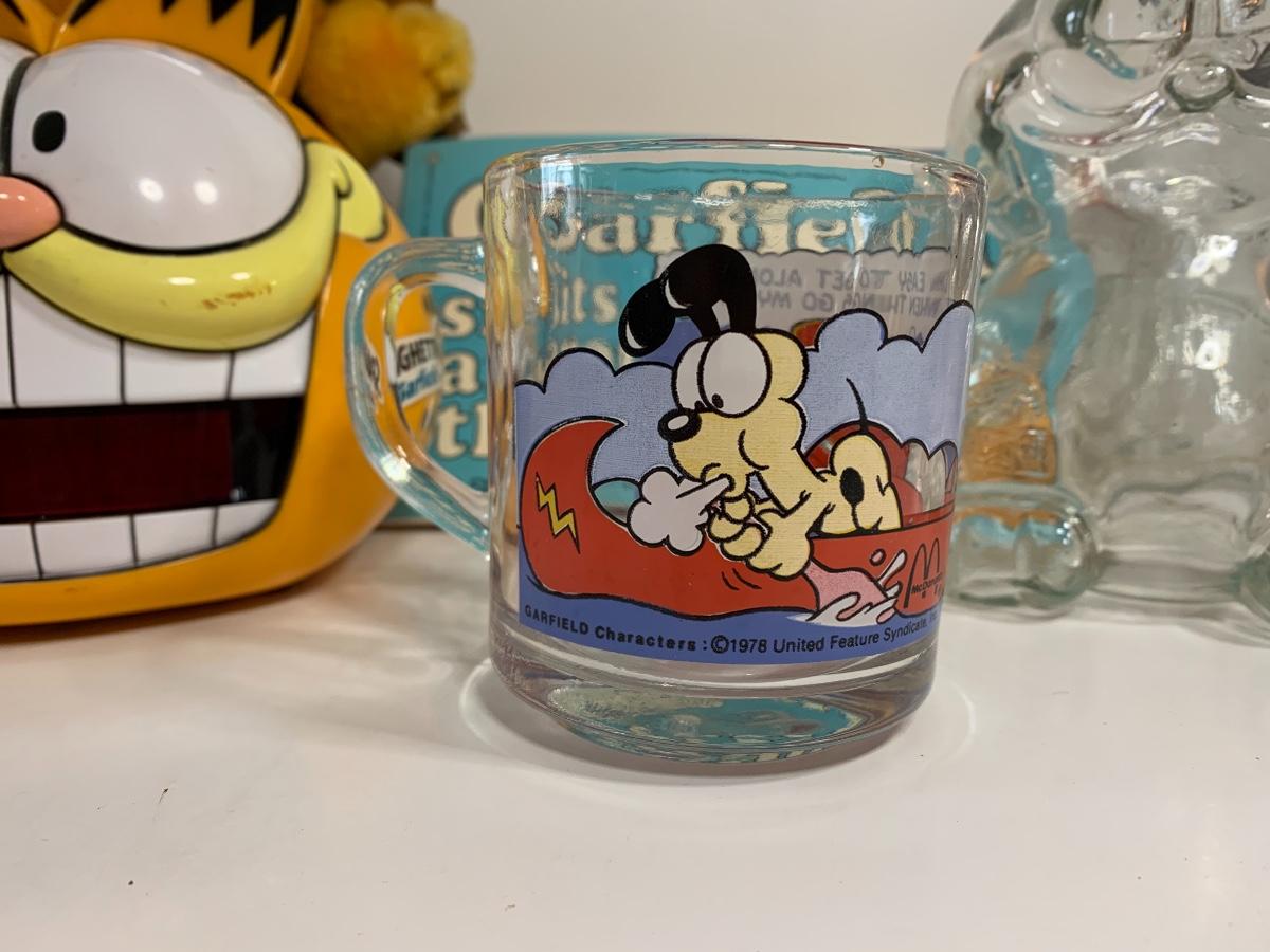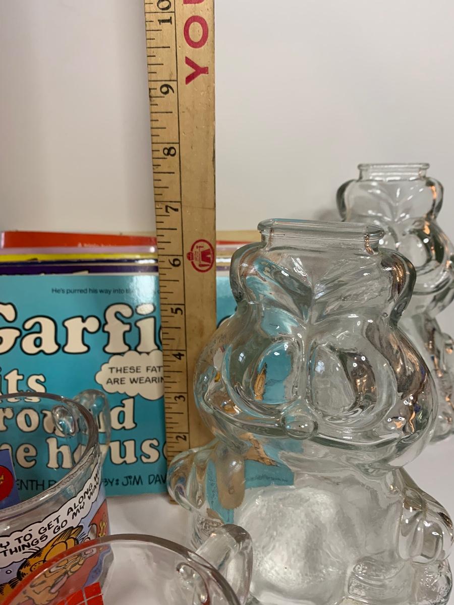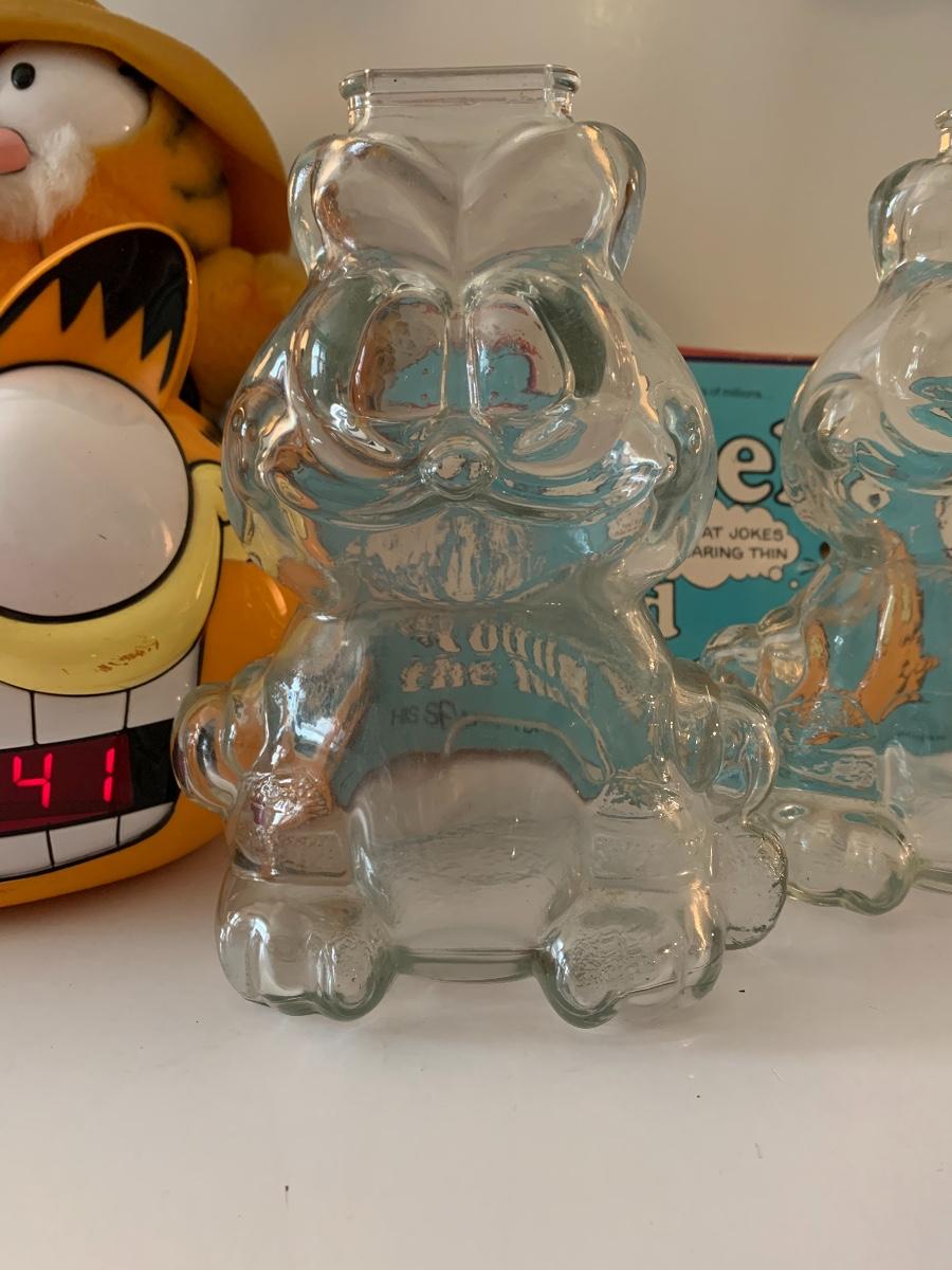 2 Vintage Anchor Hocking Garfield banks ( one box); A cool digital Garfield alarm clock. Plugged in an kept time however alarm was not tested.. Mugs & books to start your morning with the Garfield funnies. And a stuffed, standing "Catch of the Day" to complete the collection. Please see all pictures as they are the best representation of the items. The pictures show condition, measurements if taken, and what is included in the lot. Due to the large amount that we photograph and the time frame, we are not always able to take measurements. All items unless noted, are pre-owned and have been used. If you purchased furniture, you must bring help. We do not allow one person to carry large furniture out on their own. Bring help, tools and a truck for the safety of our client’s homes, and your personal safety. Company policy. Thank you.