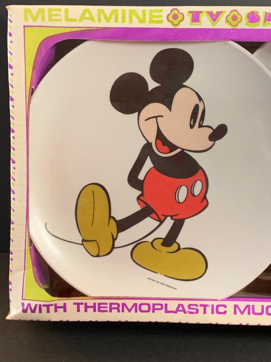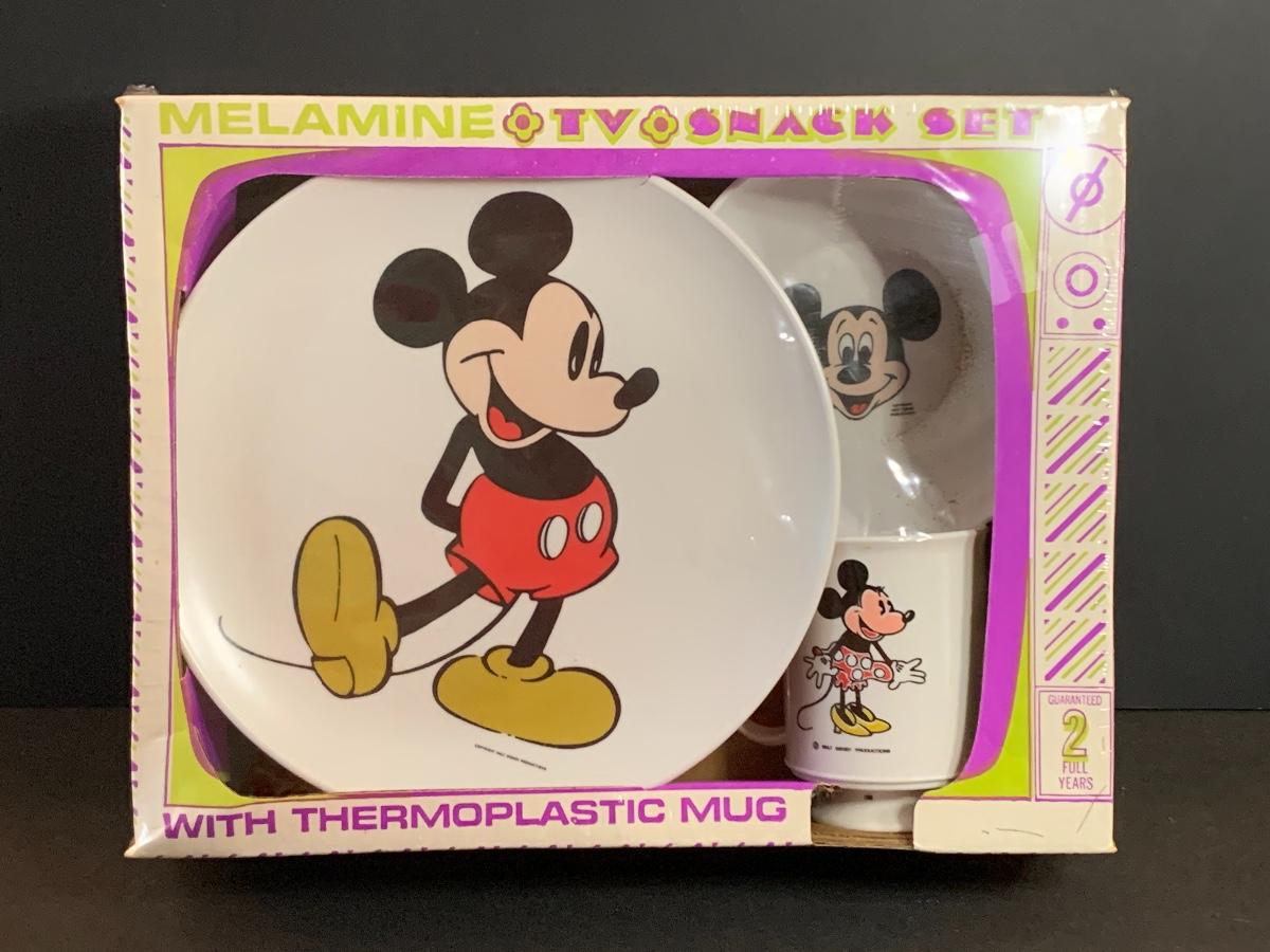 Lot 60: Vintage Disney/Mickey New Melamine Snack Set, Bank, Placemats & More