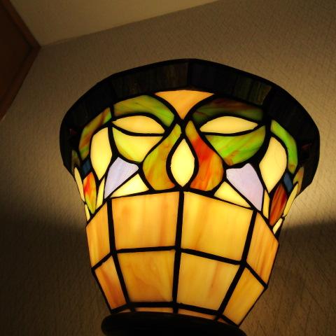 IRON BASED TABLE LAMP WITH COLORFUL GLASS SHADE
