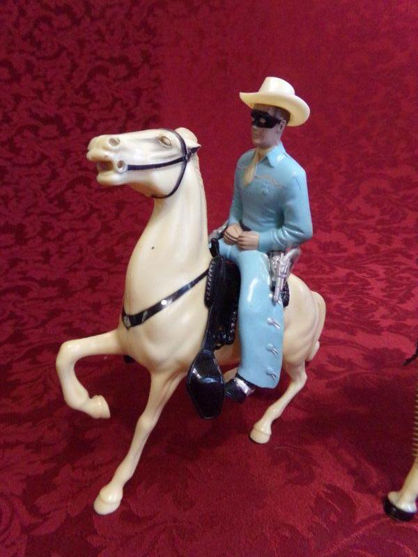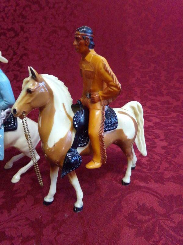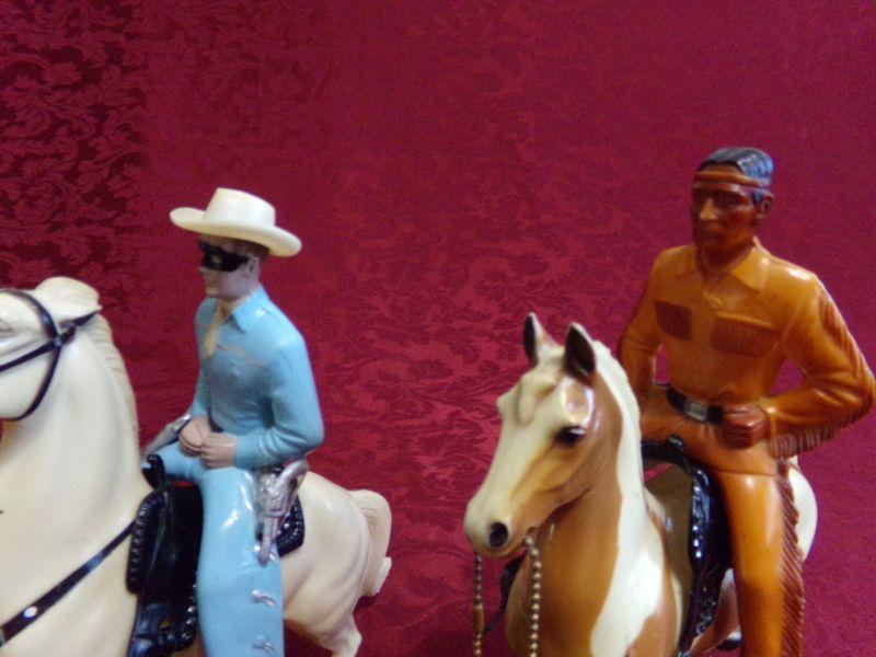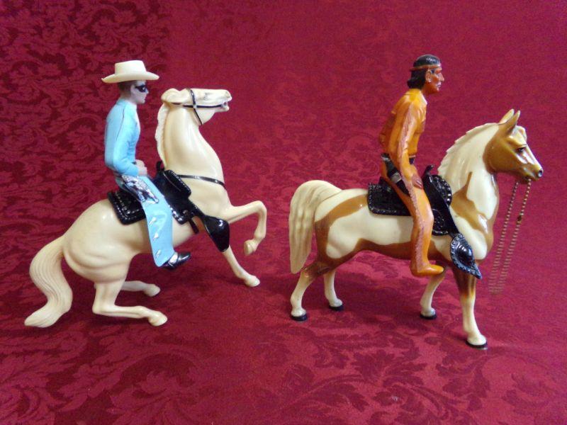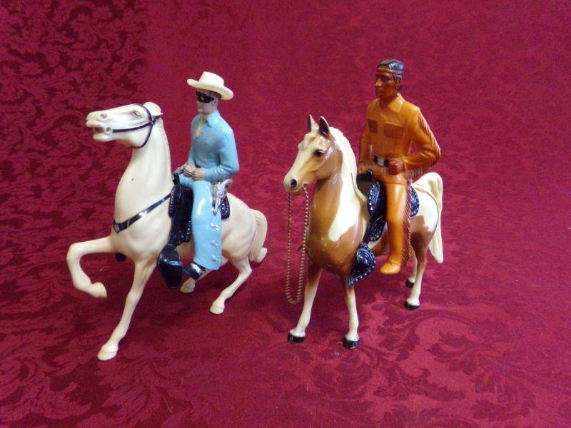 HARTLAND TOYS OF THE LONE RANGER AND TONTO ON HORSES. THEY ARE IN GOOD CONDITION.