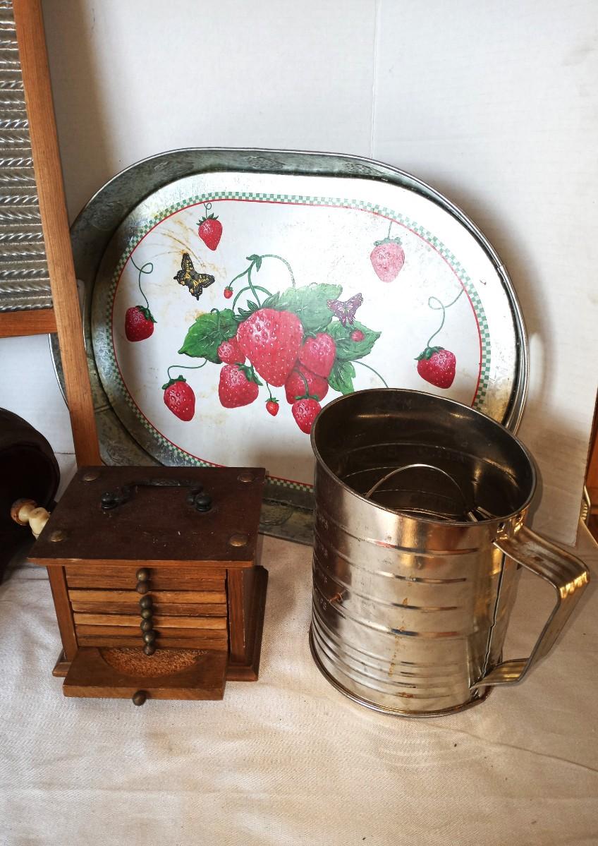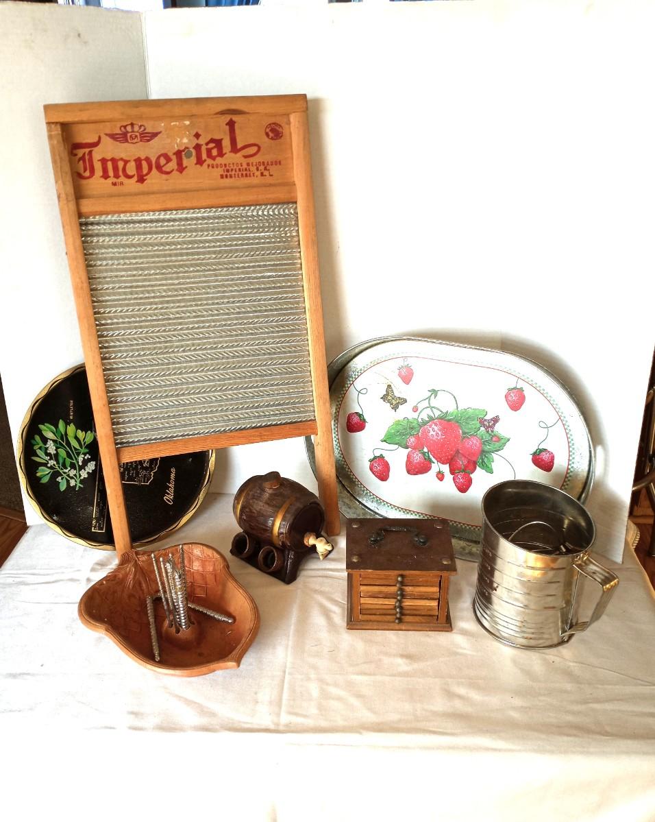 VINTAGE IMPERIAL WASHBOARD-FLOUR SIFTER-COASTERS AND MORE