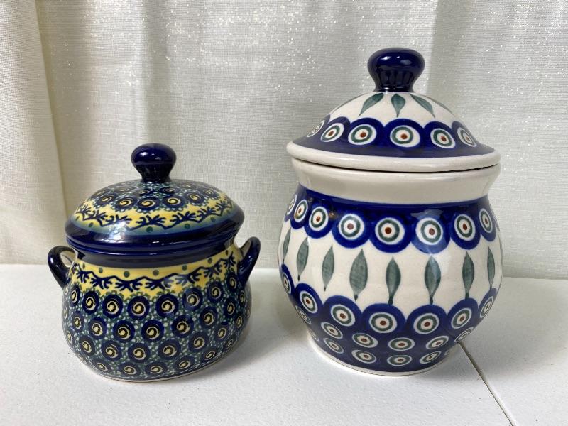Lot # 195 s Pair Boleslawieg Polish Stoneware Covered Potttery Peacock