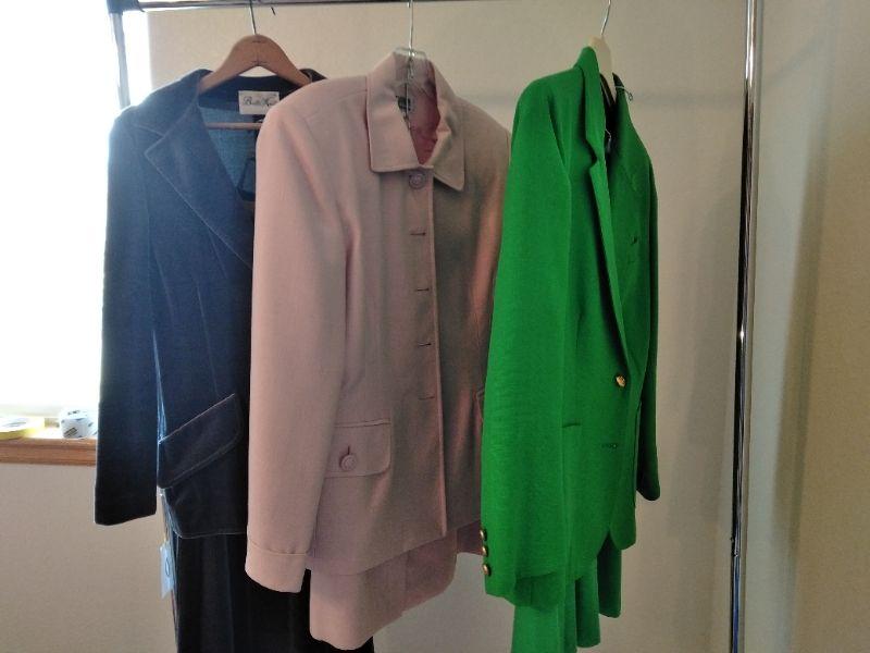 THREE VINTAGE WOMEN'S SUITS, EACH WITH A SKIRT AND BLAZER. SIZE 12