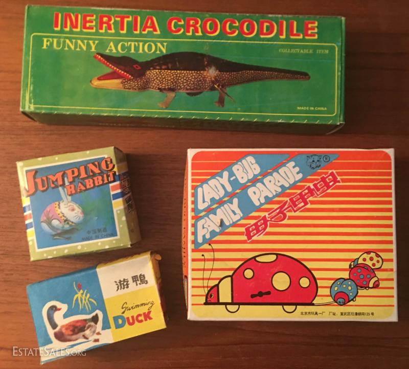 Lot Tin Wind-Up Toys Duck Rabbit Lady-Bug Crocodile