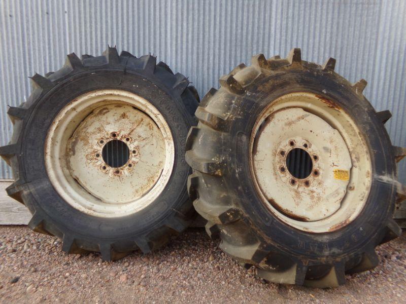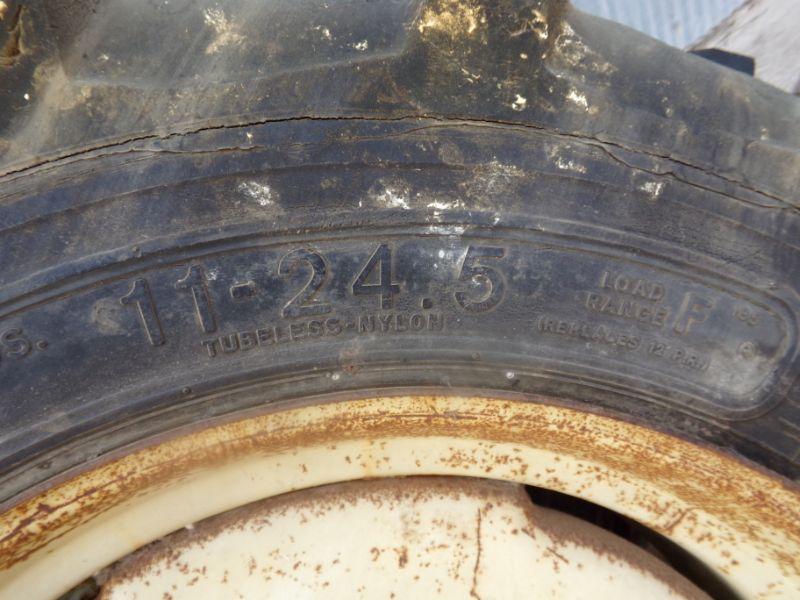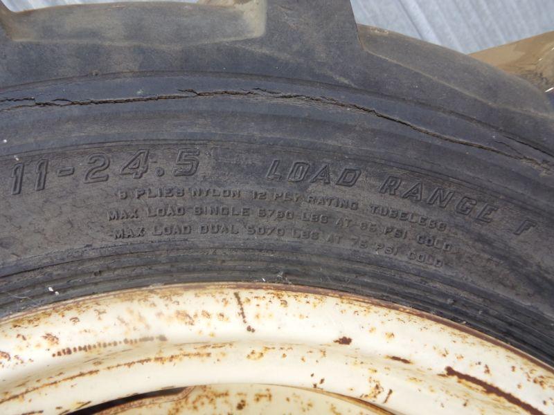 2 OLD TRACTOR WHEELS AND TIRES. THE SIZE IS 11-24.5