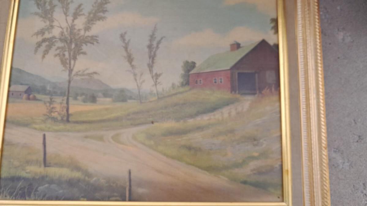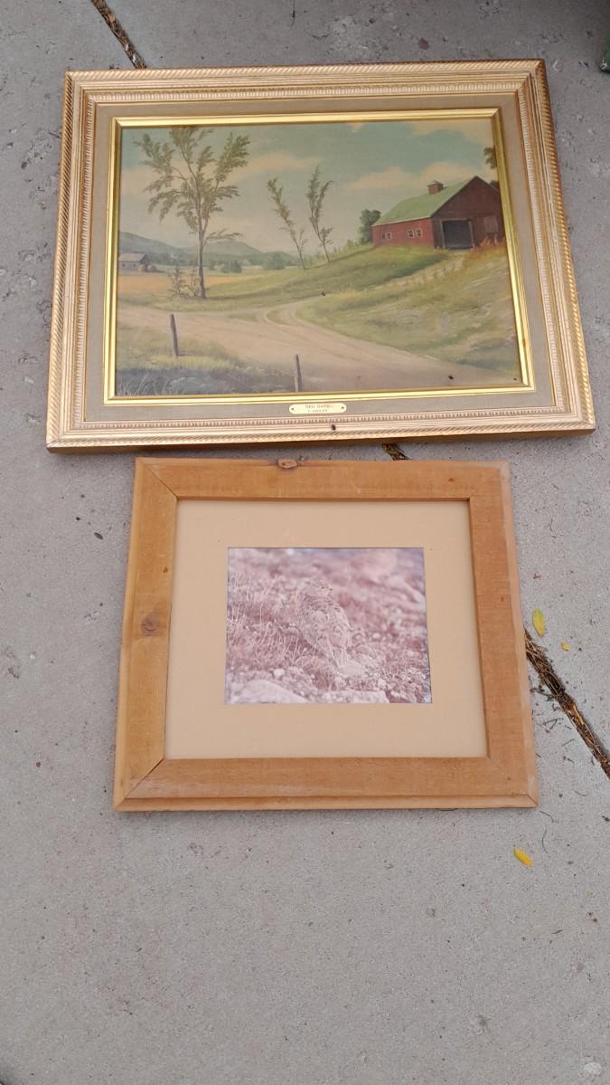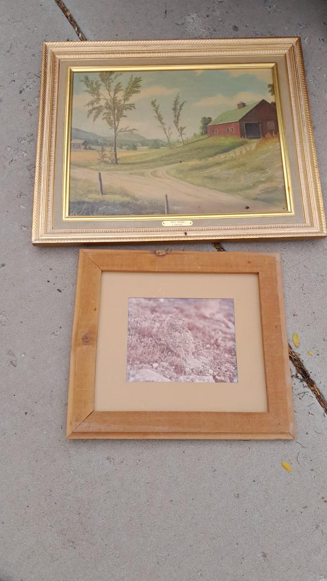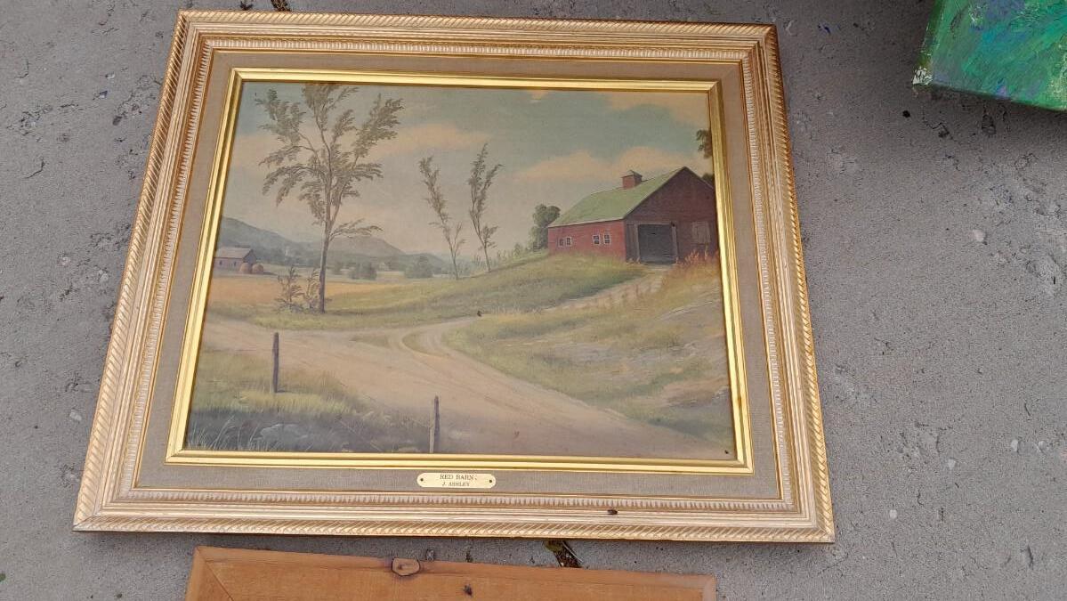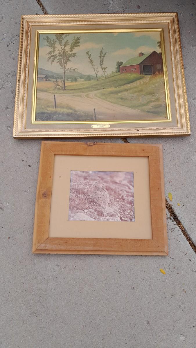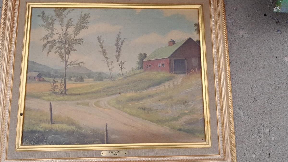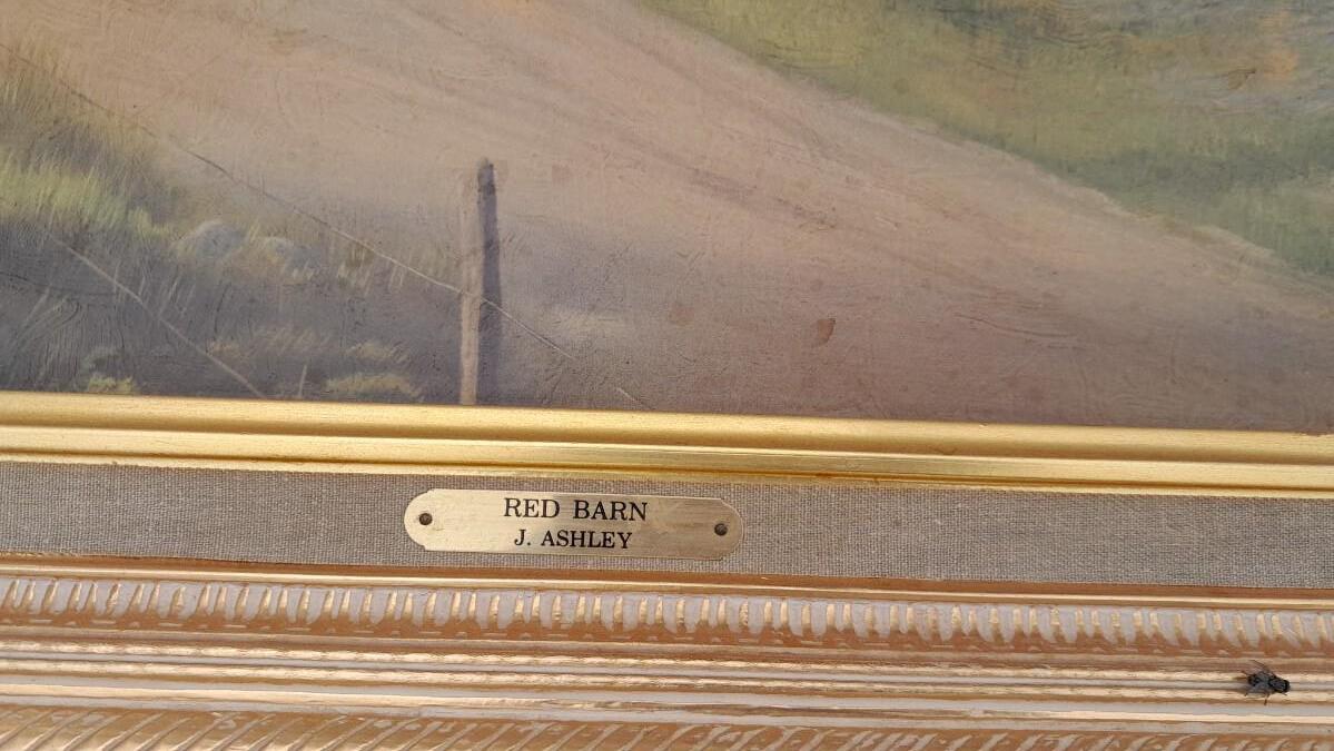 TWO FRAMED PICTURES RED BARN J. ASHLEY AND QUAIL