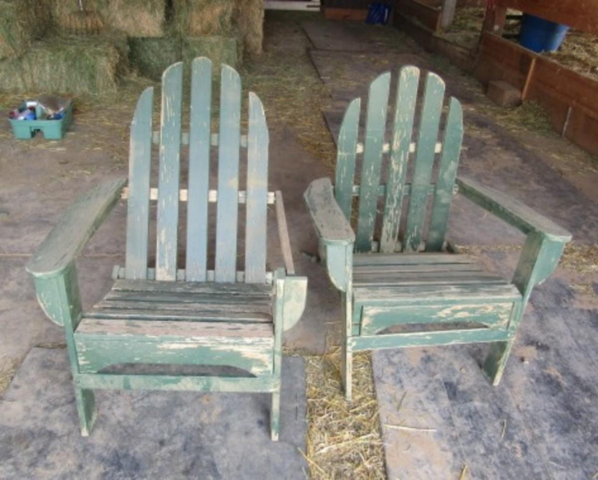 TWO VINTAGE WOODEN ADIRONDACK CHAIRS