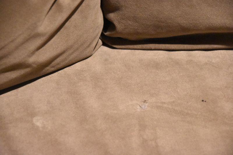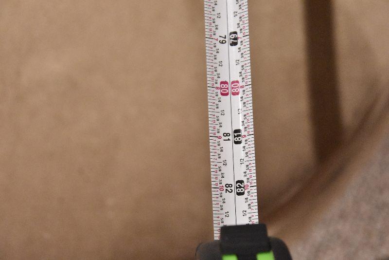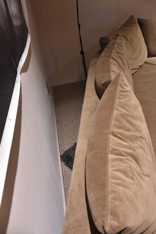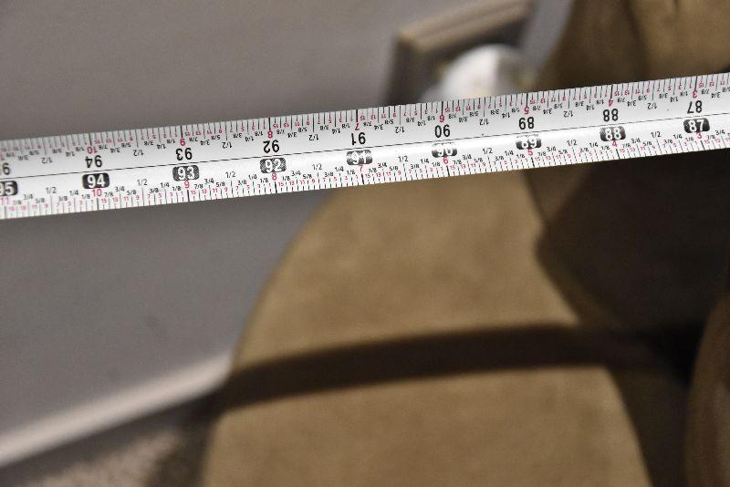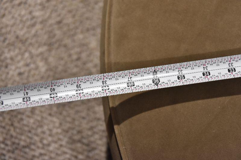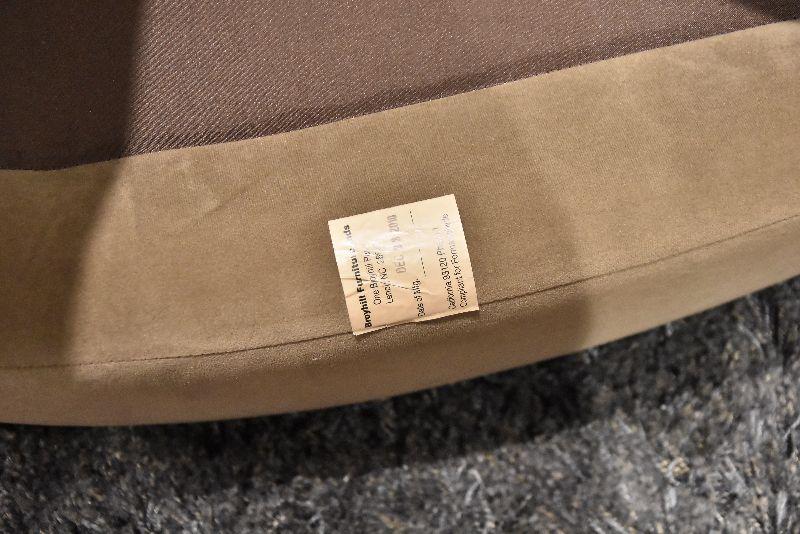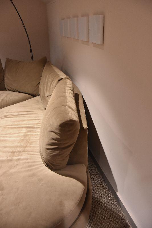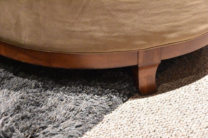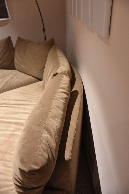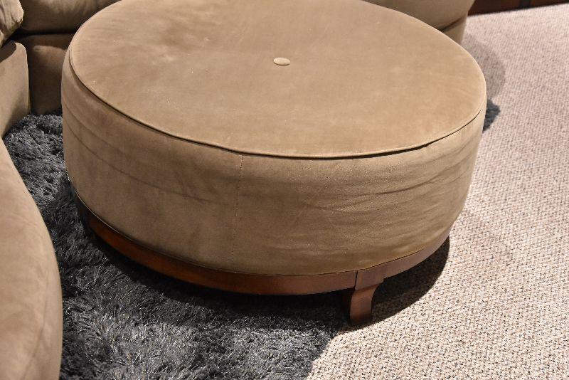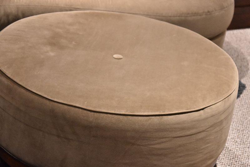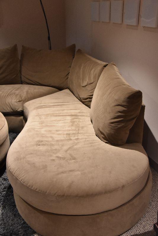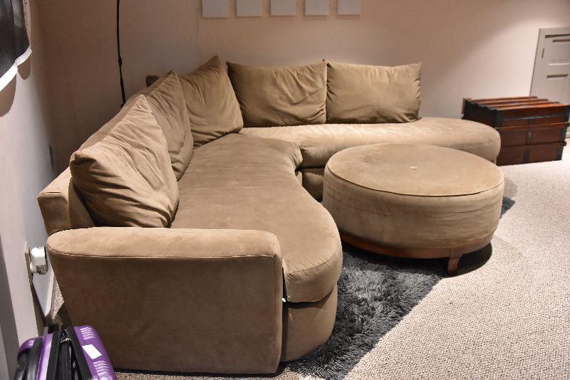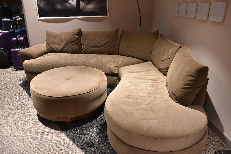 Two piece, curved, sectional couch and matching ottoman. Used condition. See pictures...Bring help to move