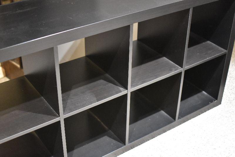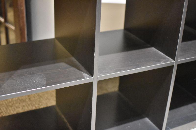 Wooden cubby hole shelf for bins. Great storage. Bring help to move