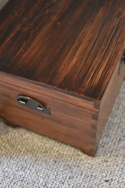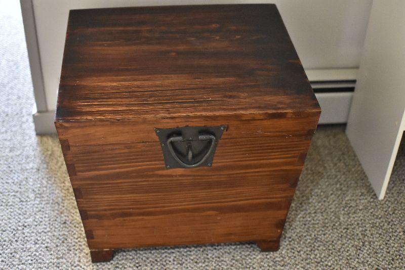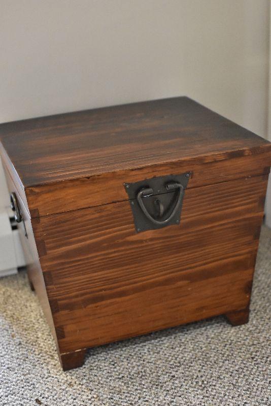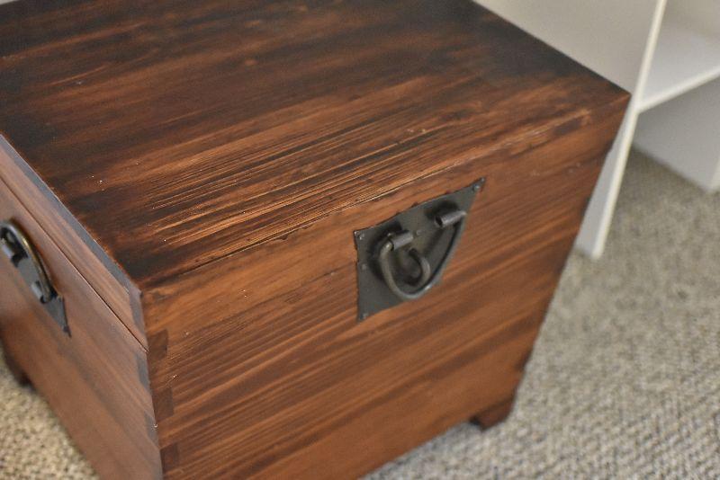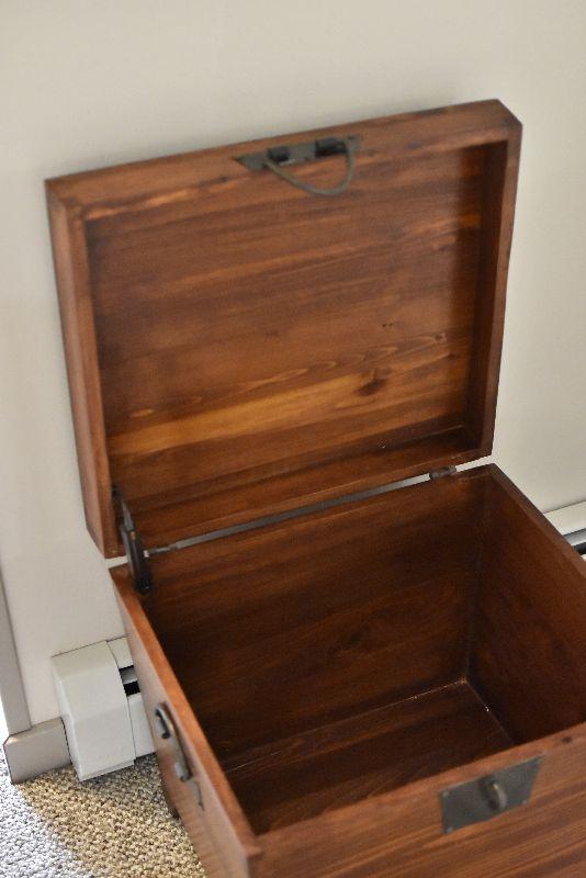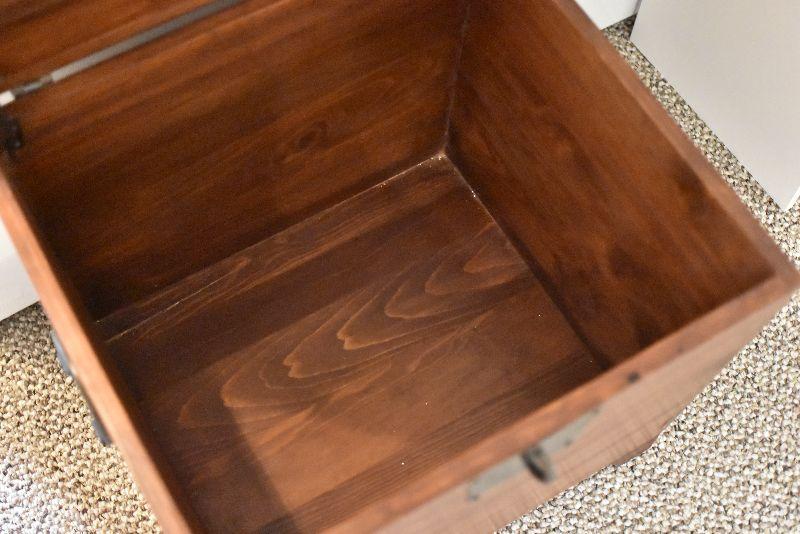Wooden chest with wrought iron handles. Bring help to move.