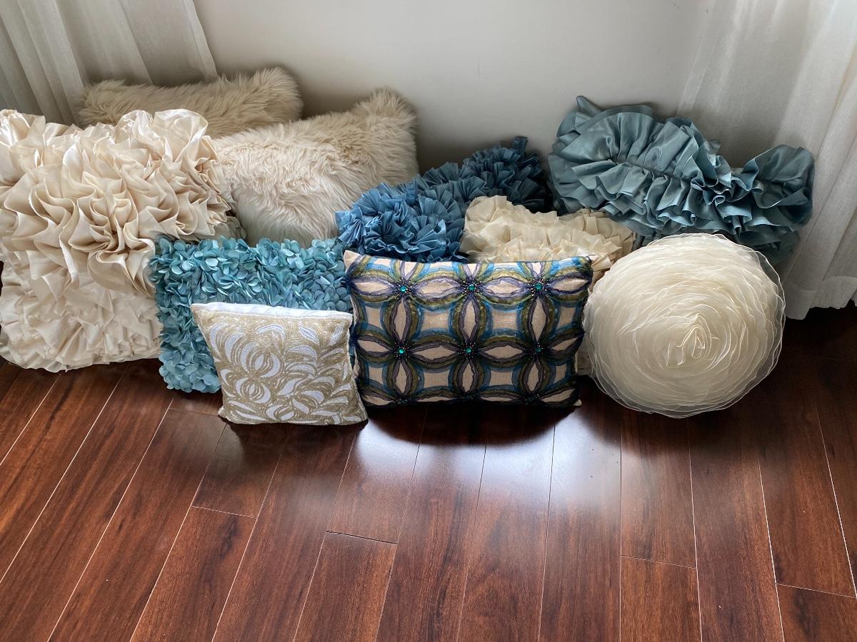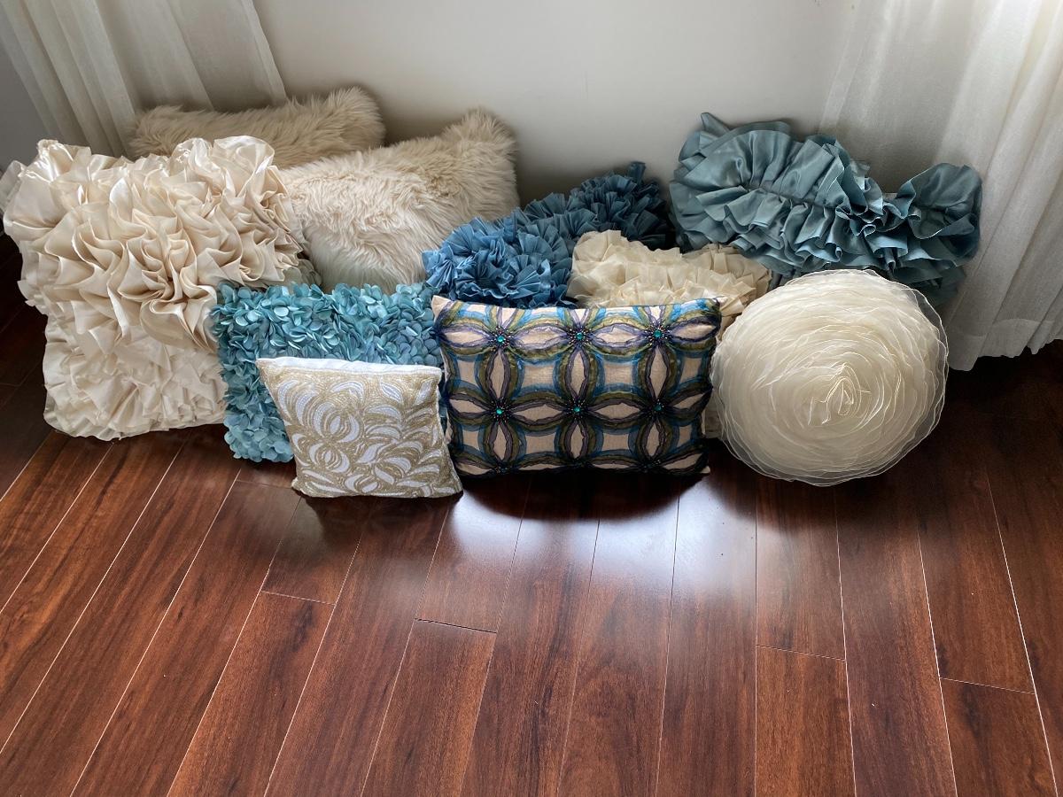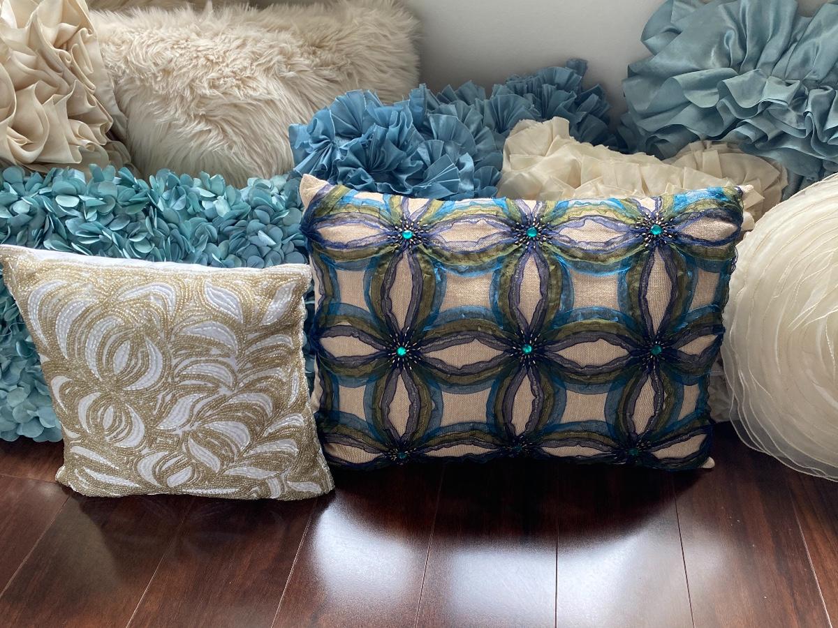 Lot US138: Decorative Teal and Ivory Throw Pillows