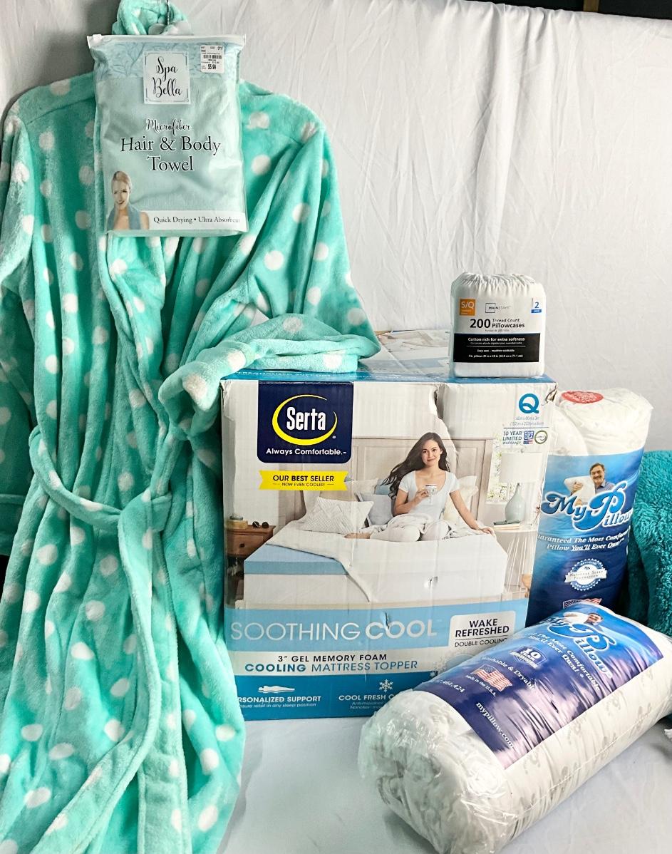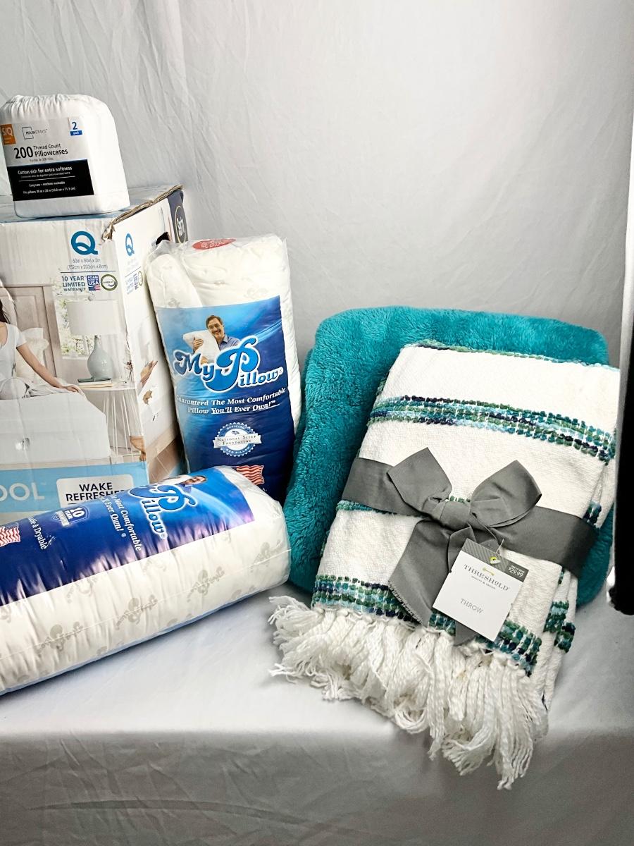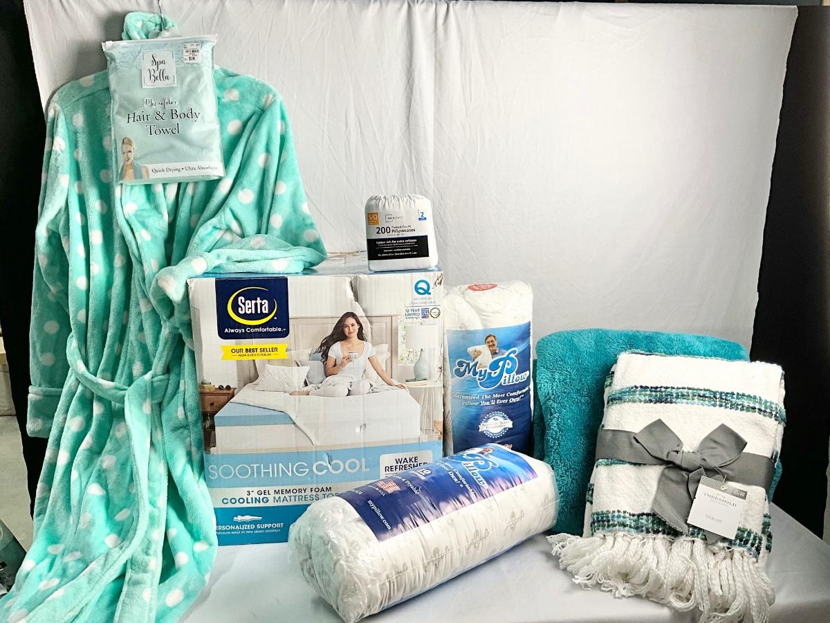 Lot V 626 NIB Serra 3” Gel Memory Foam Soothing Mattress Topper, Two My Pillows, Plush Bathrobe, Two Throws