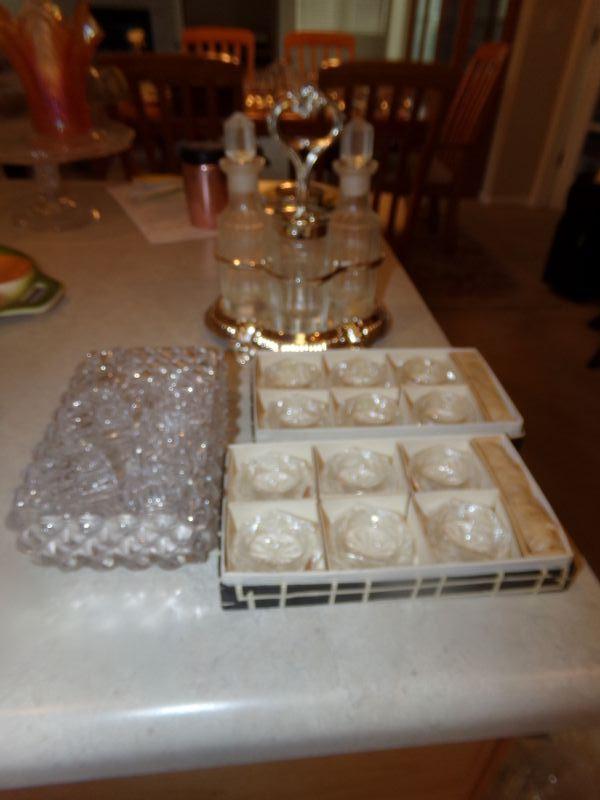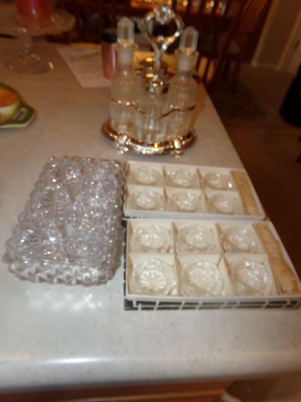 LOT 162  VINEGAR & OIL CRUET SET & SALT CELLARS