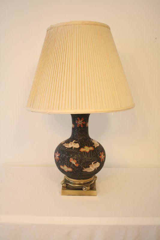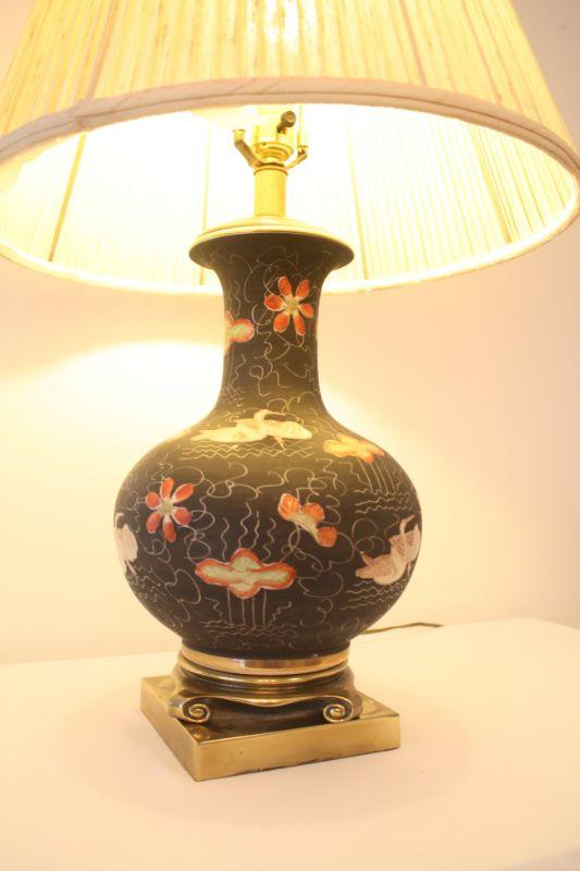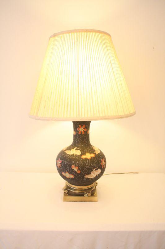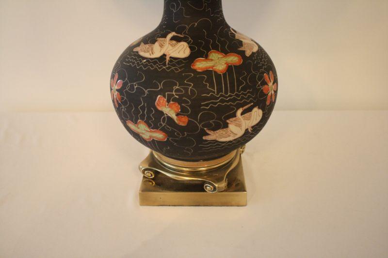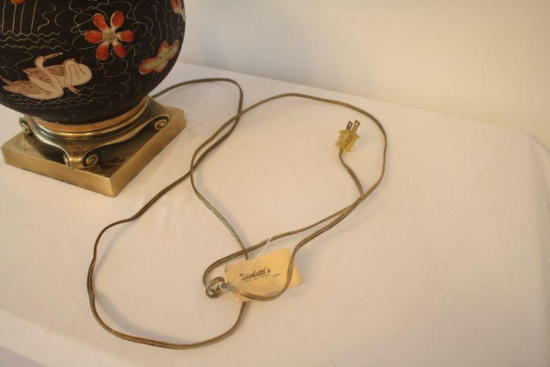 Lot #102: Vintage Black and Gold Swans and Flowers Painted Oriental Style Lamp