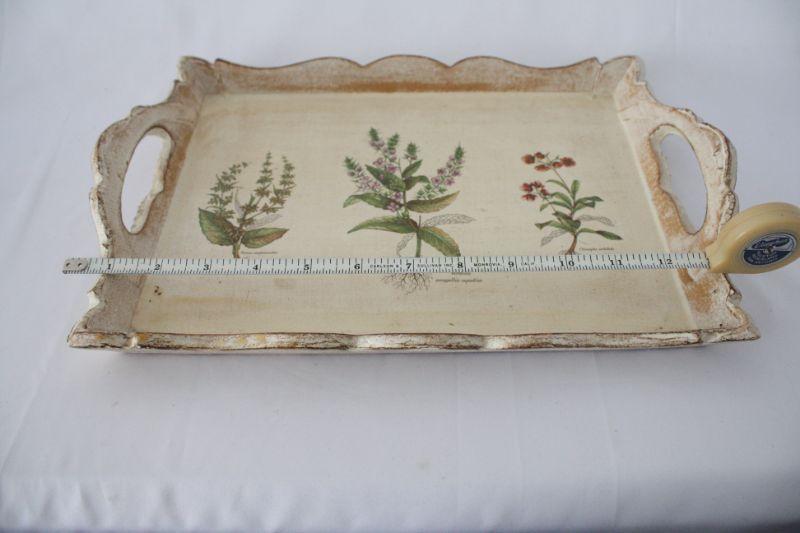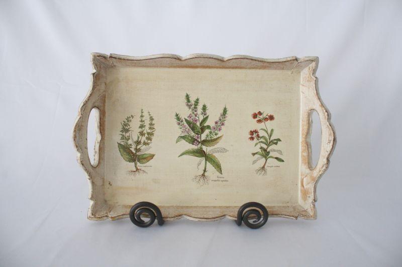 Lot #176: Vintage Carved Wood Floral Painted Tea Vanity Tray
