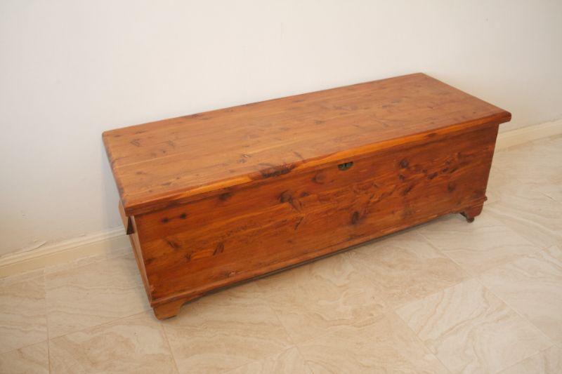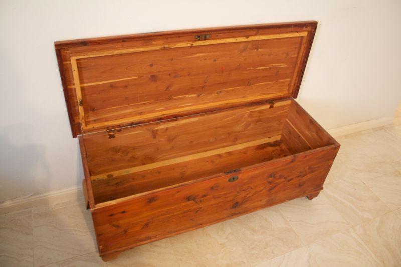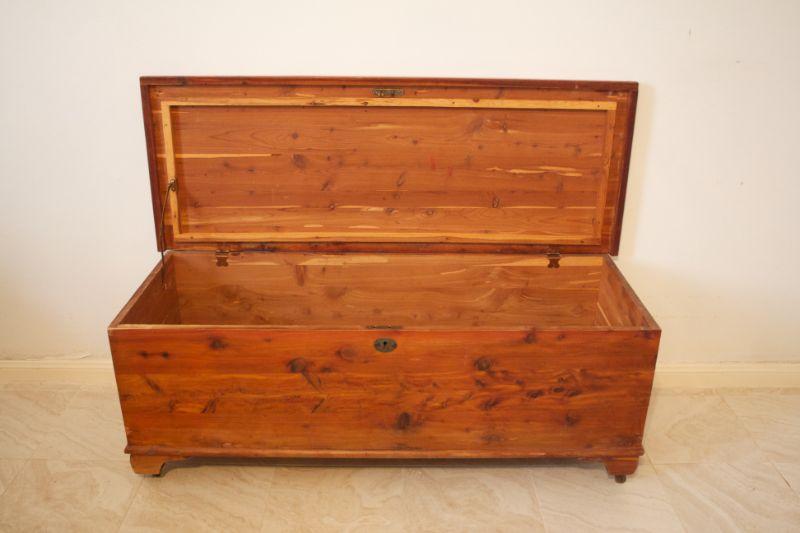 Vintage Cedar Chest - Beautifully preserved vintage cedar storage chest. Measures: 46" (width) 18" (depth) 17" (height). Wood is in very good condition. Note: one of the hinges is unattached on the left side.