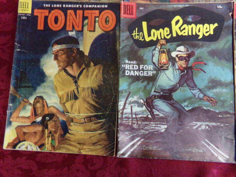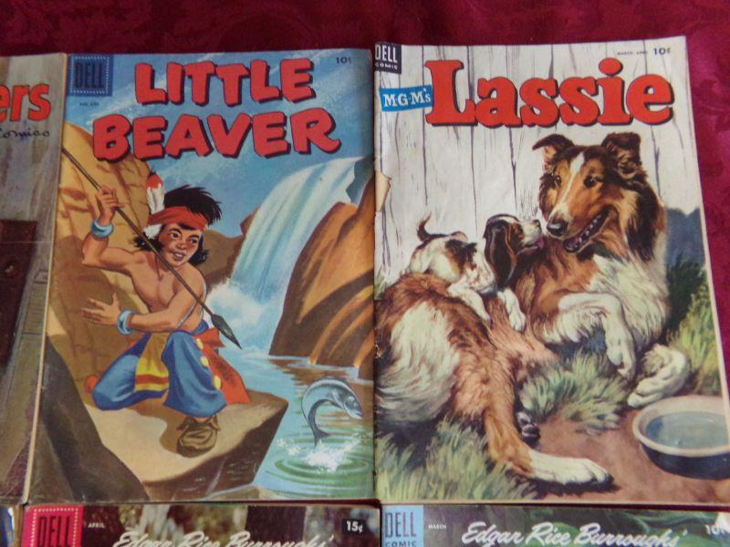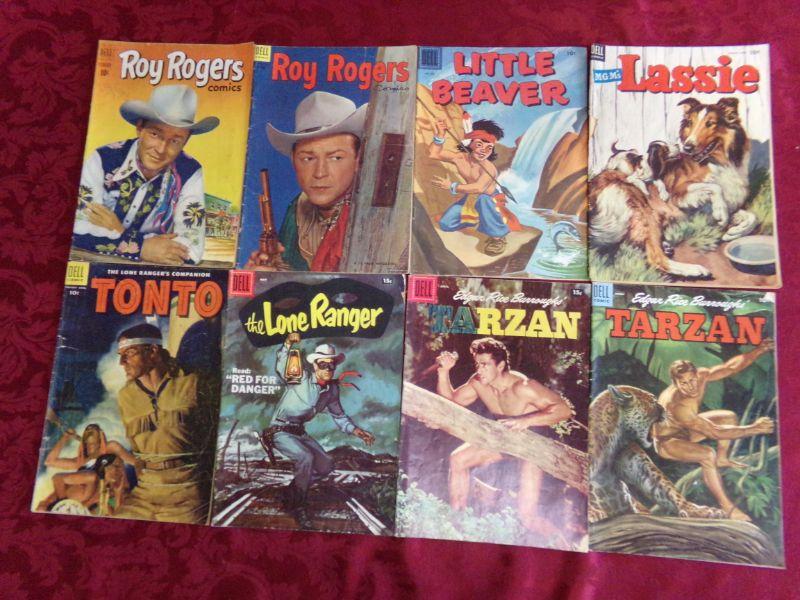 ROY ROGERS, THE LONE RANGER, TONTO, LITTLE BEAVER, LASSIE, AND TARZAN. THEY ARE IN FAIR CONDITION.