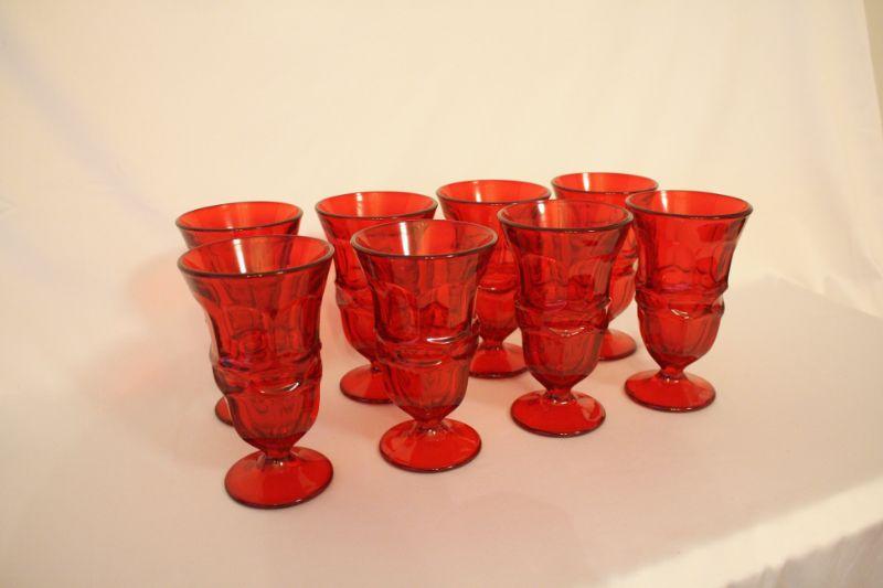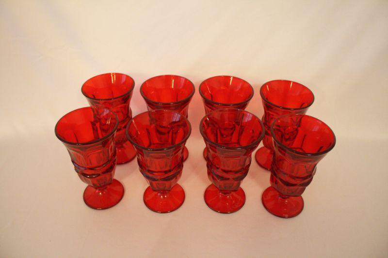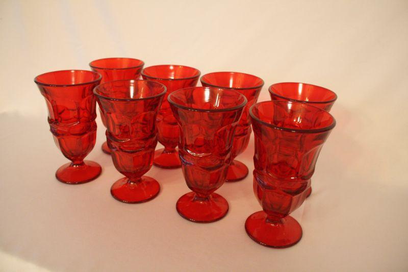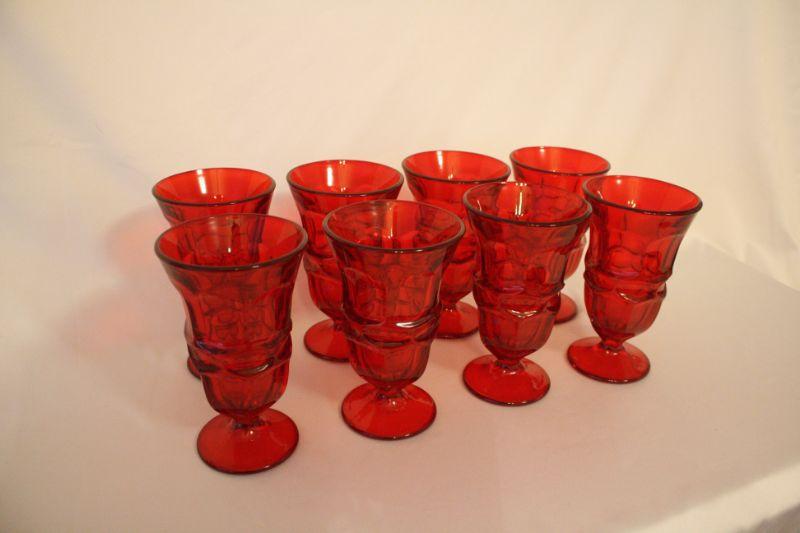 Vintage Fostoria Jamestown Ruby Red Sundae Glasses - Set of eight Fostoria Jamestown glasses made between 1964-1982. Deep ruby red color, thick sturdy glasses. In excellent condition, no chips or cracks,