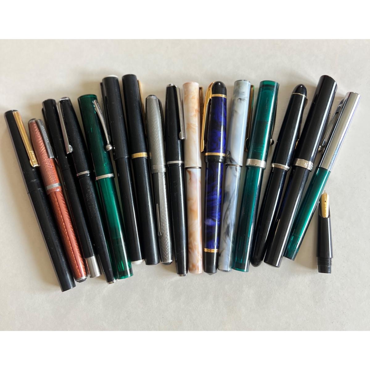 16 antique vintage fountain pens plus 1 nib. Pens are untested. See lot 174 and 175 for more pens.
