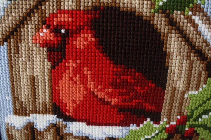 Lot #188: Vintage Framed Needlepoint Cardinal Art