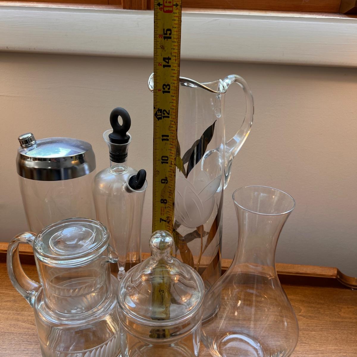 Lot Vintage Glass Barware, Pitchers, Decanter