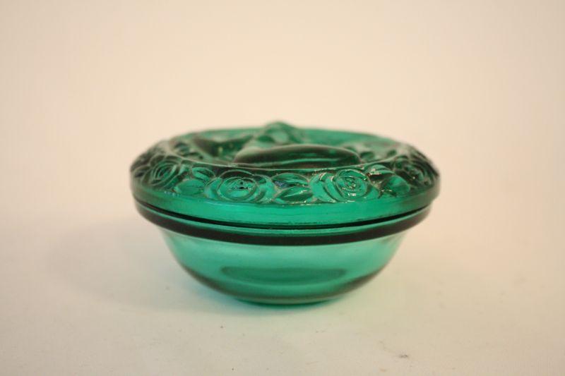 Lot #58: Vintage Green Aqua Glass Trinket Container