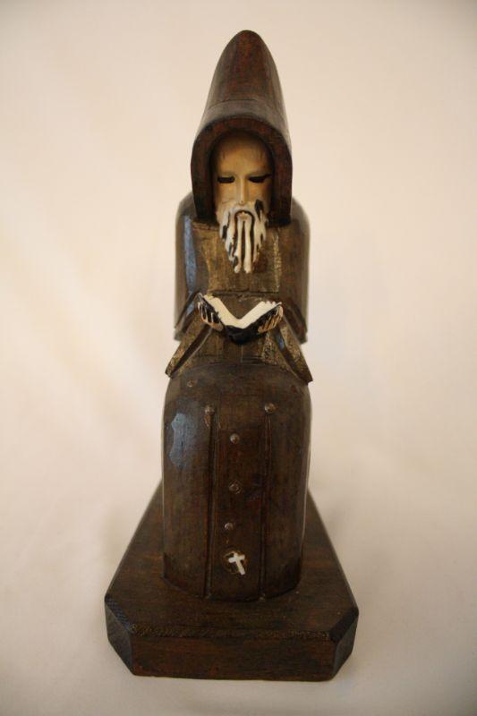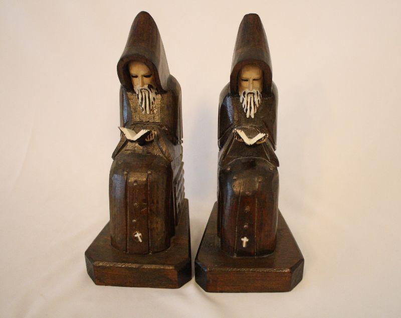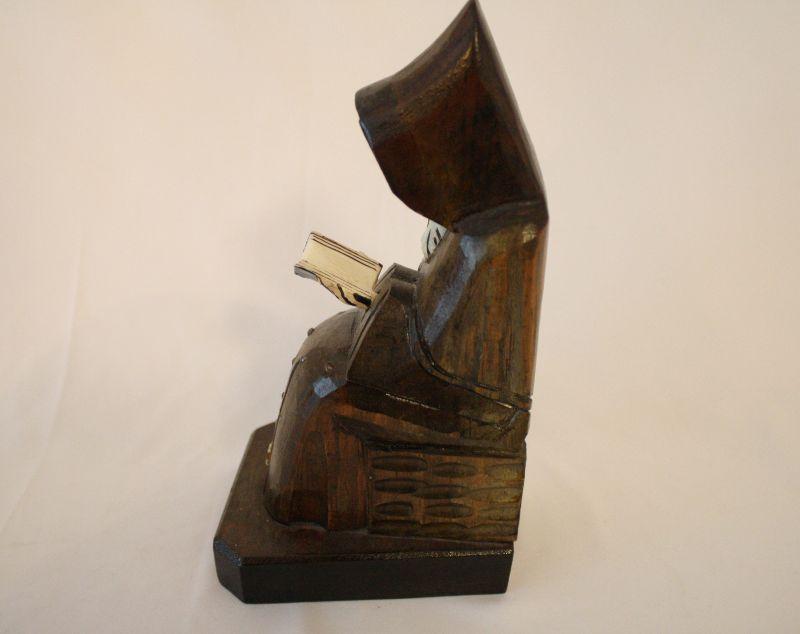 Lot #49: Vintage Hand Carved Wooden Monk | Priest | Jesuit Bookend Made in Mexico